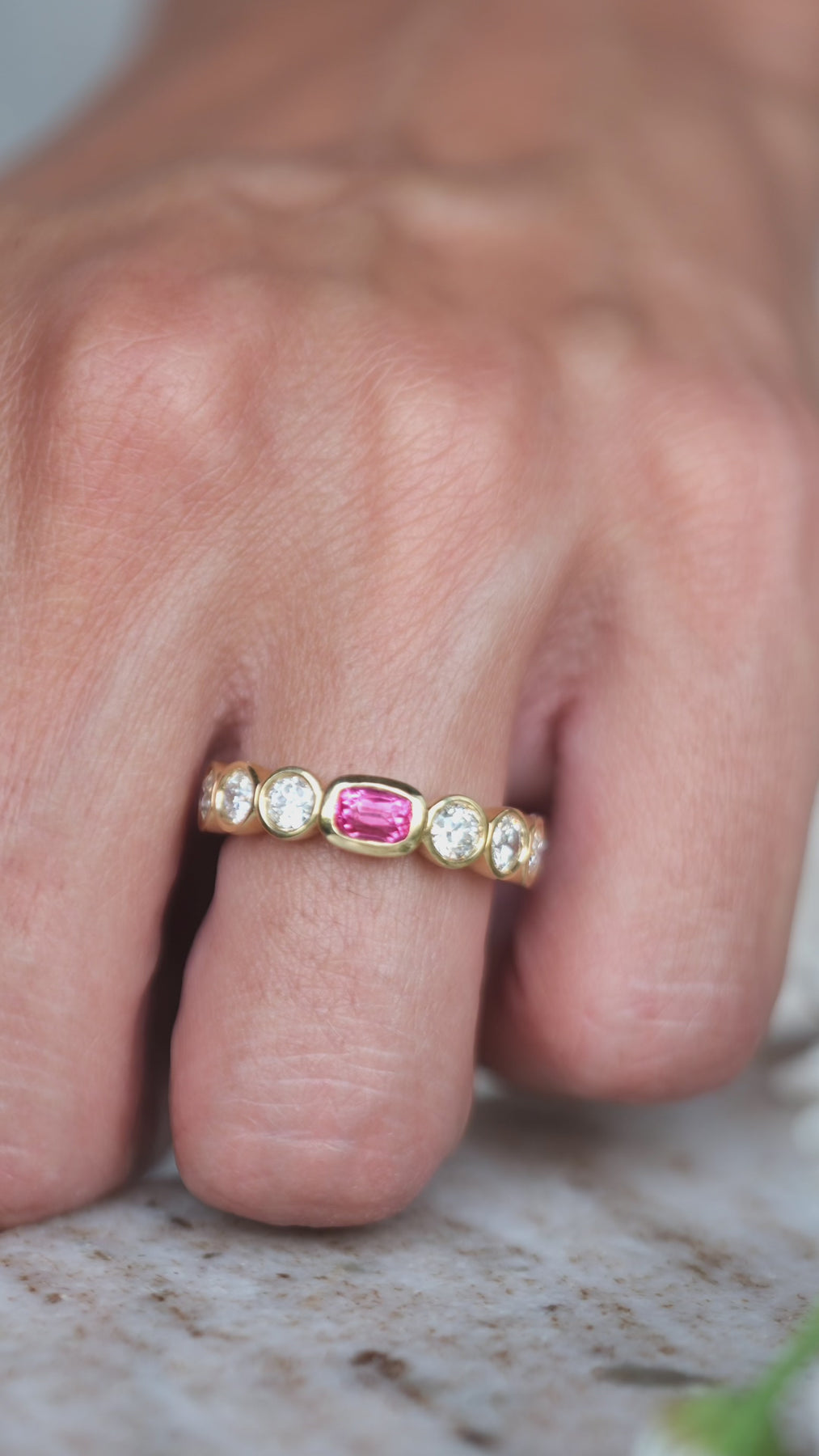 .54 untreated Burma pink spinel and 1.01 ct antique old European cut diamonds (g,vs) in 18k gold