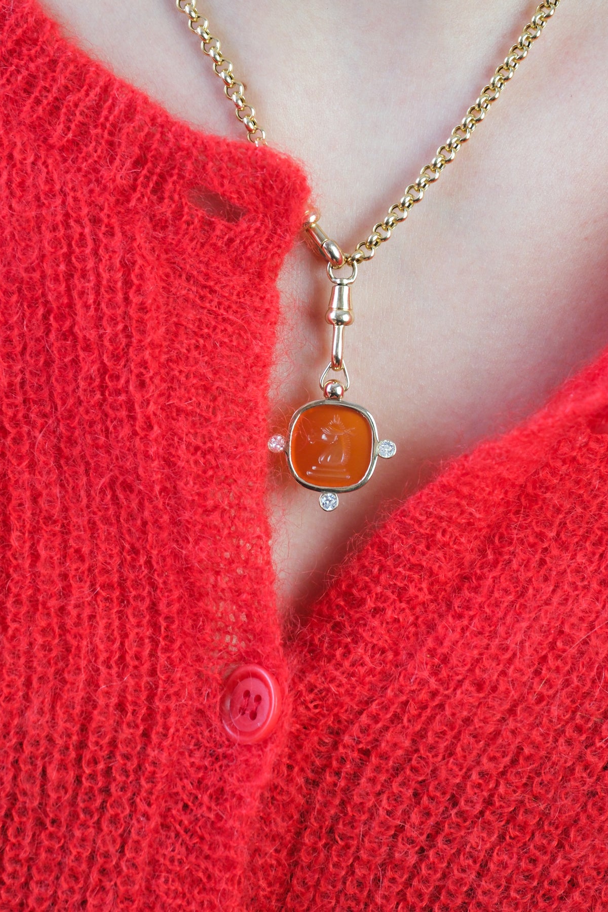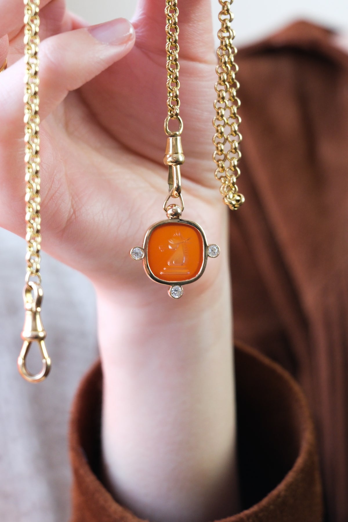Hand carved custom made blindfolded knight carnelian