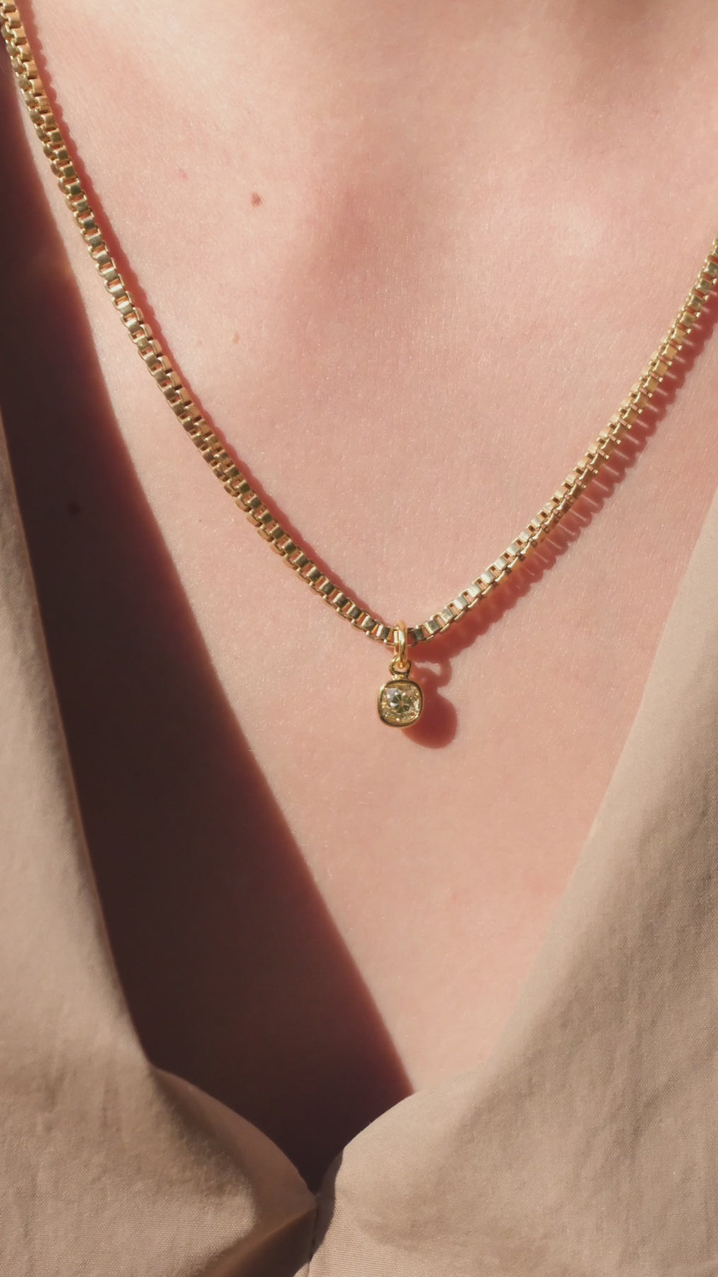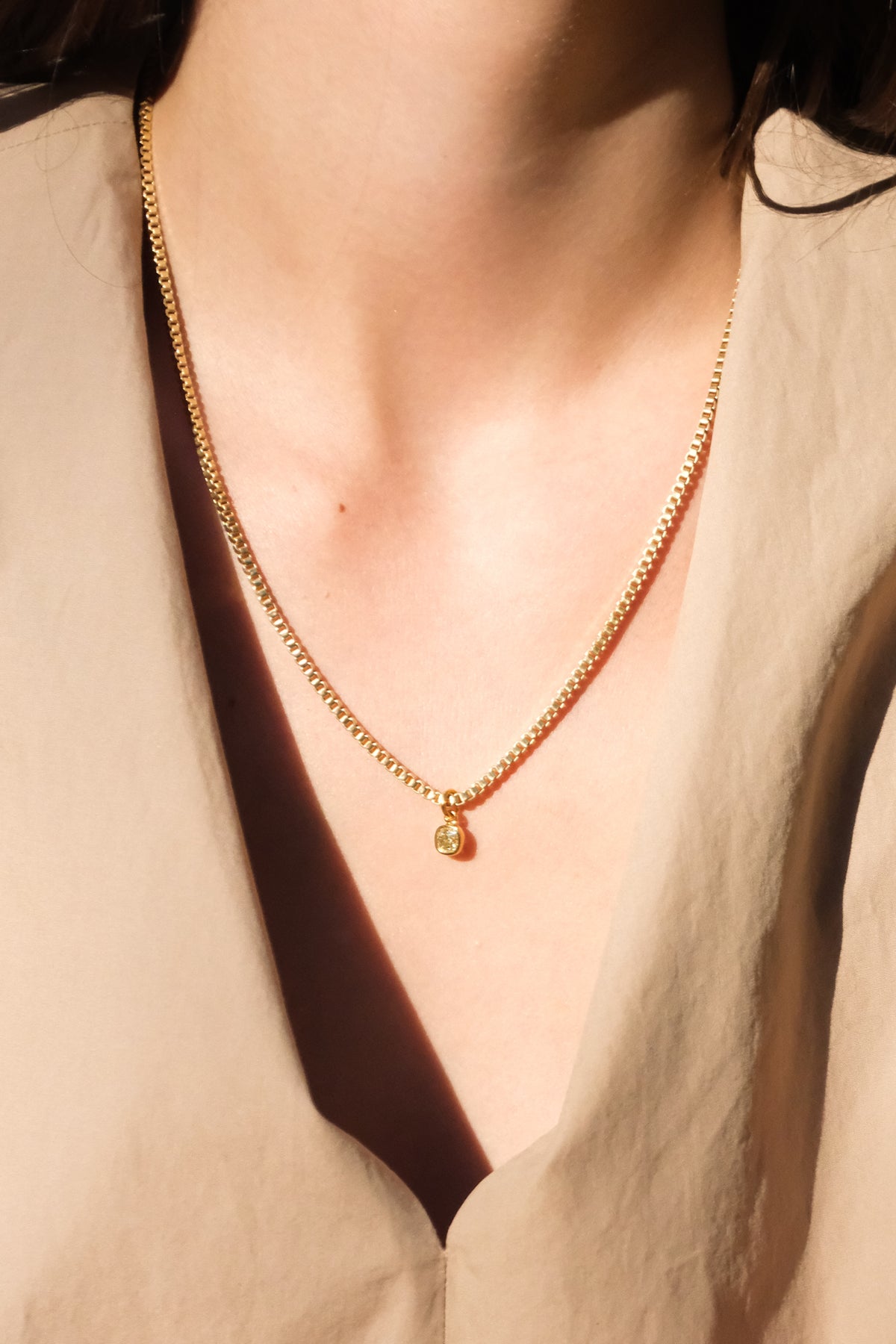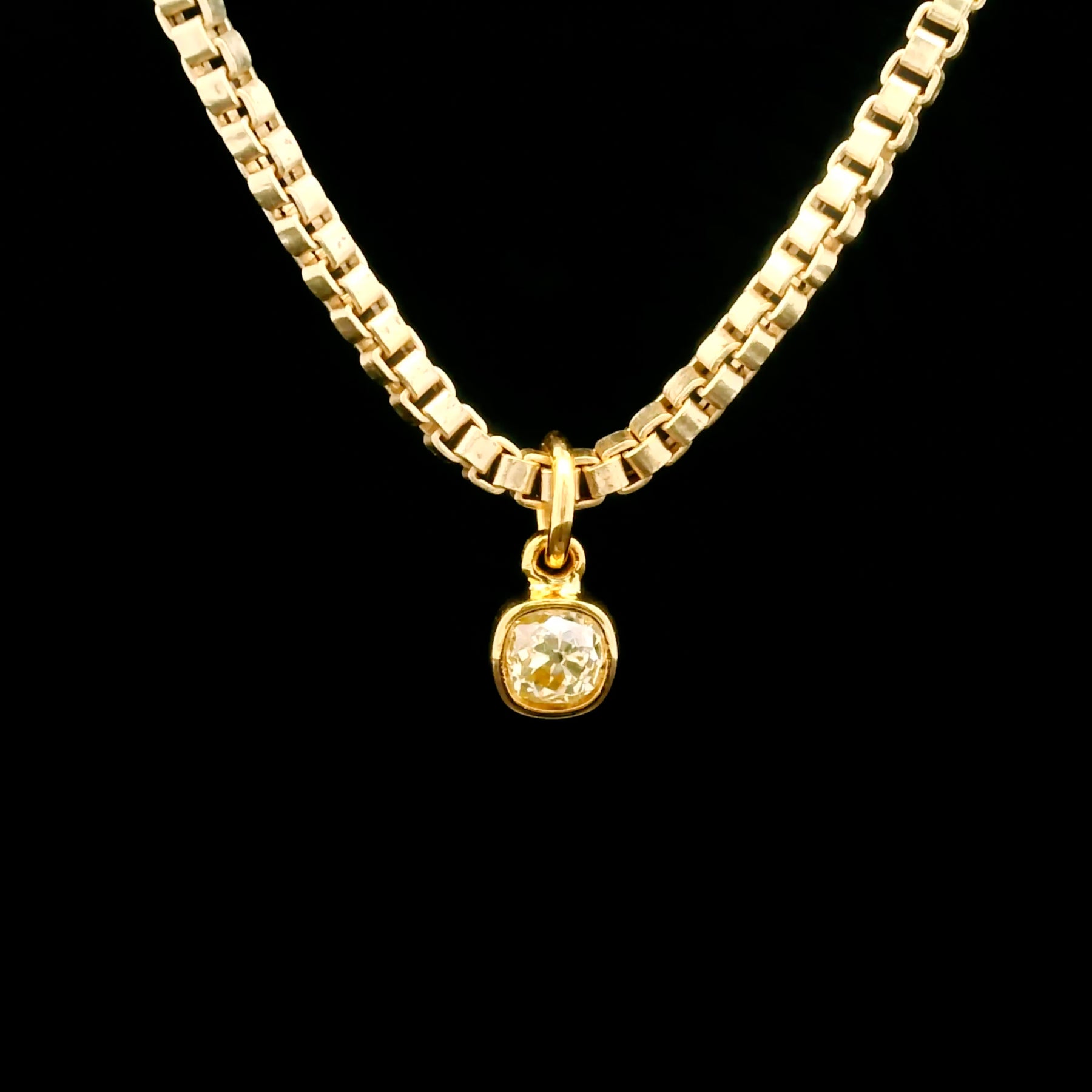 18k box chain and .64ct fancy yellow old mine cut drop