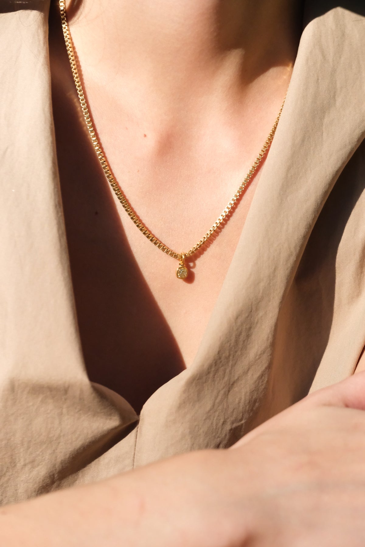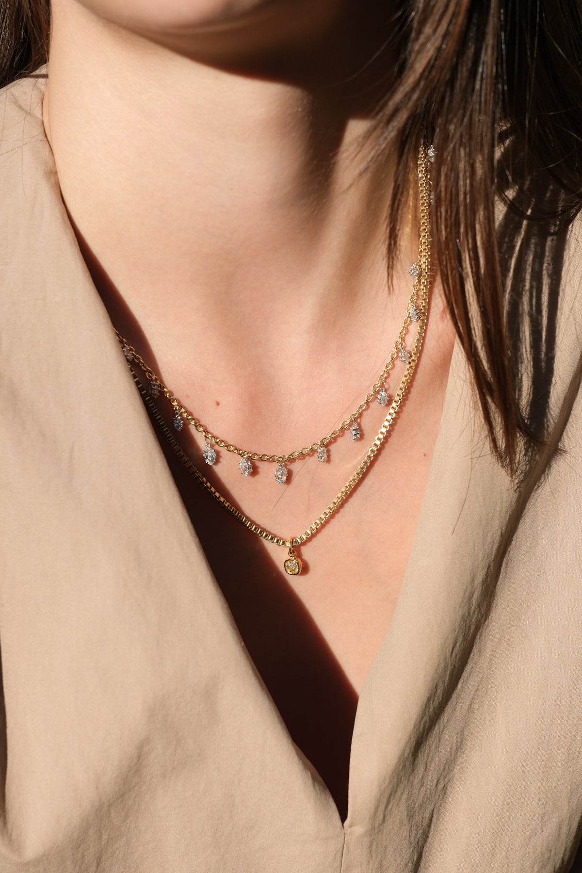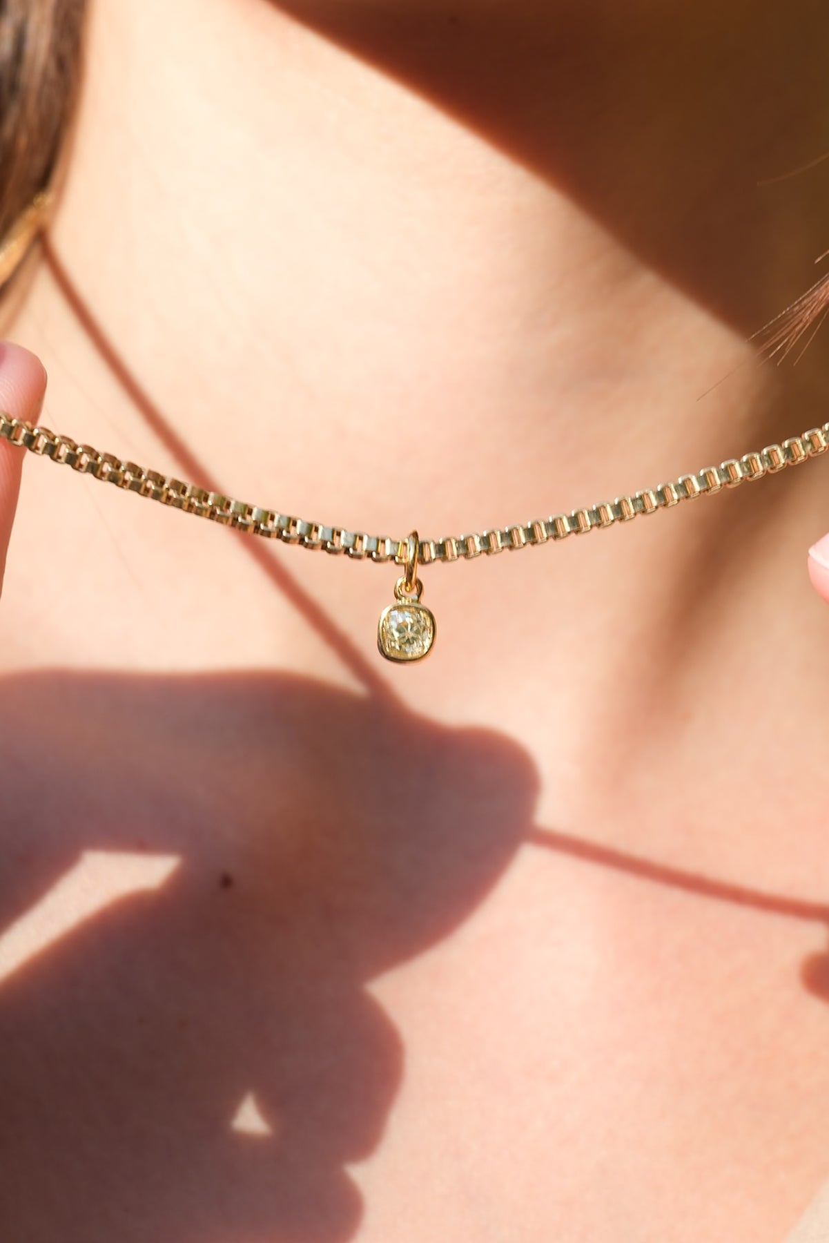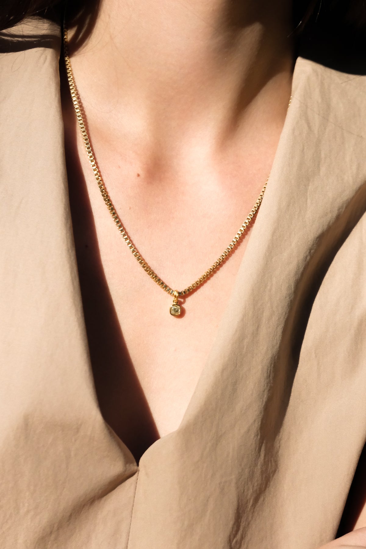 18k box chain and .64ct fancy yellow old mine cut drop