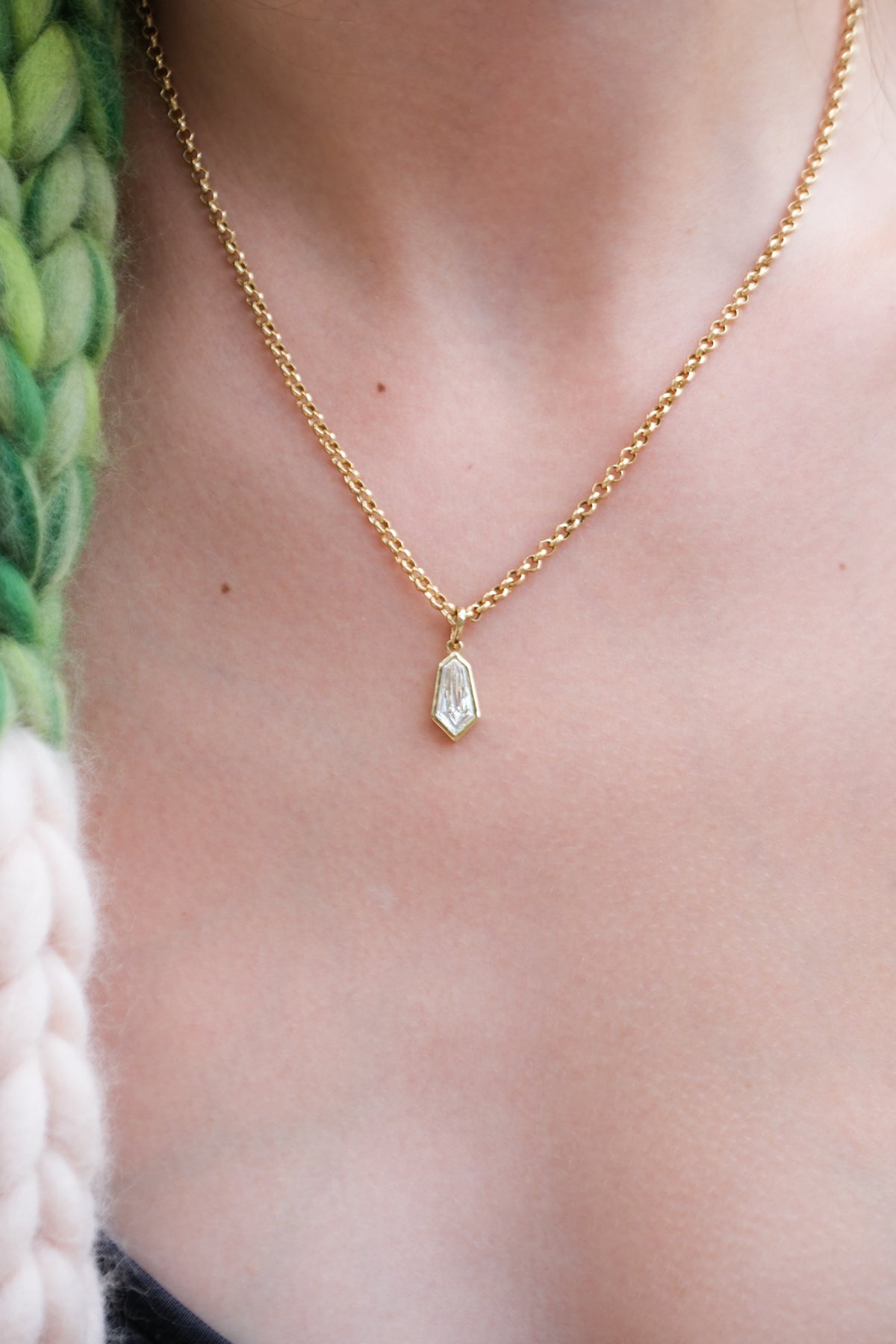 1.09 ct G, VS2 kite/shield pendant in 18k yellow gold
