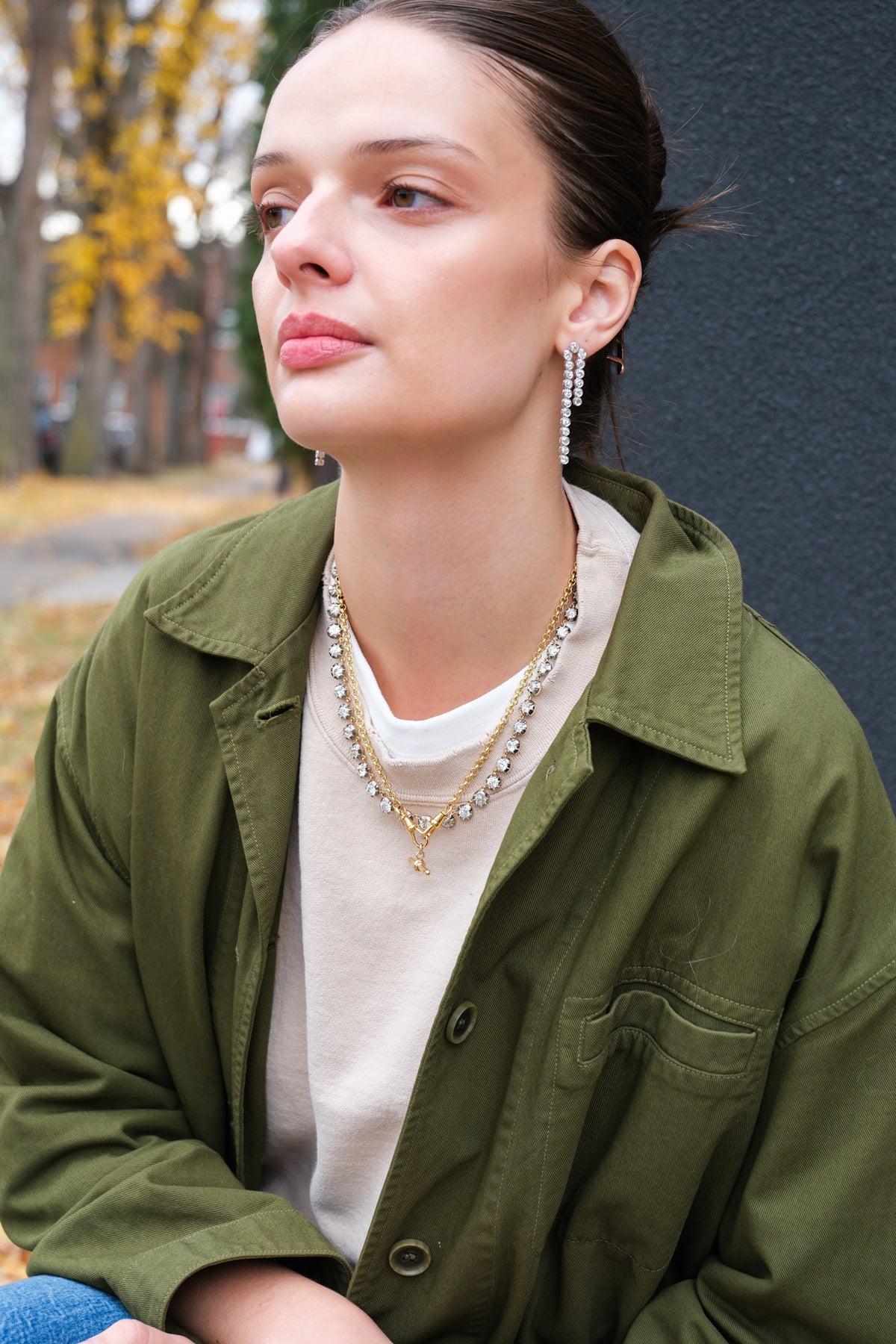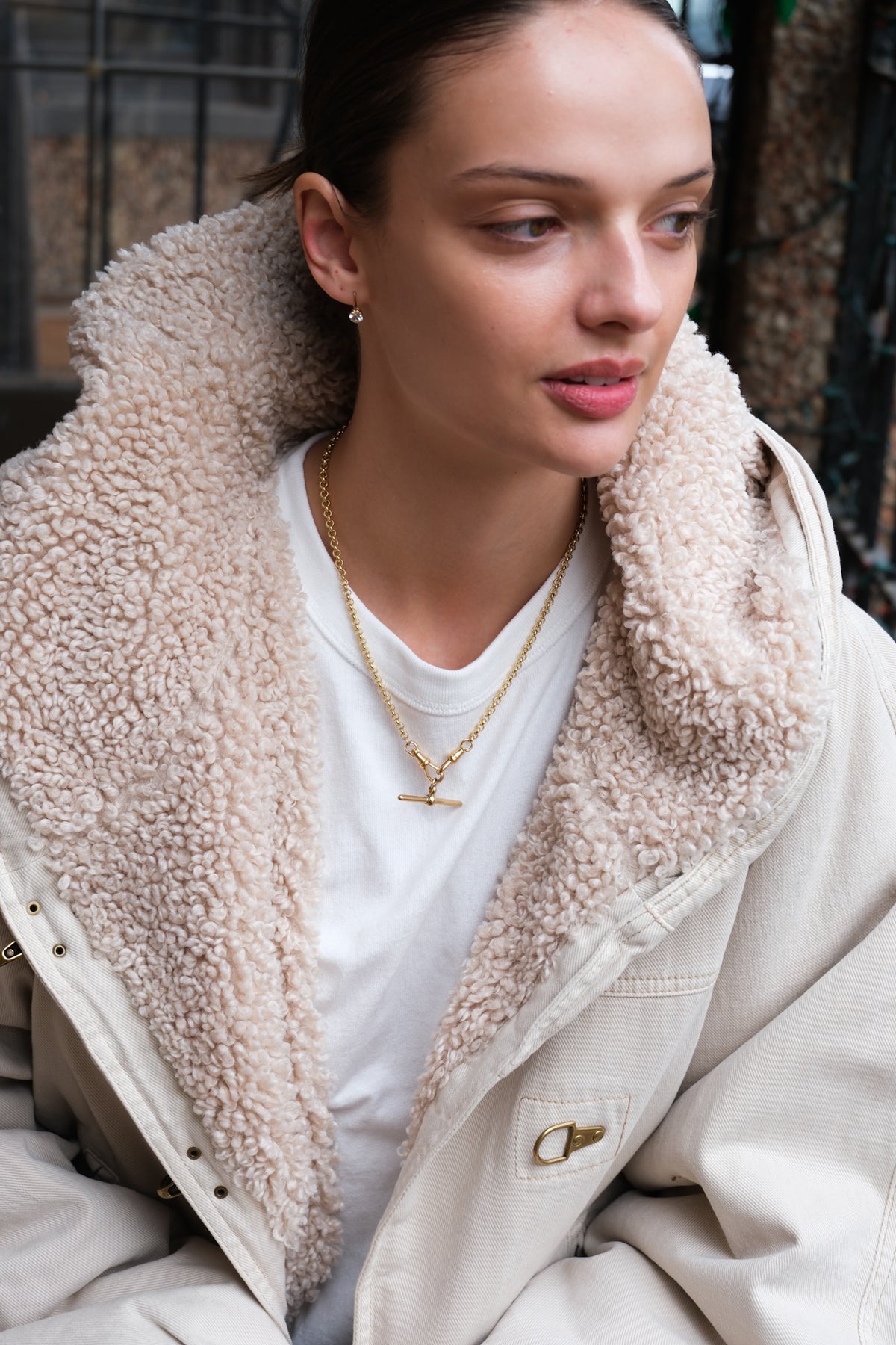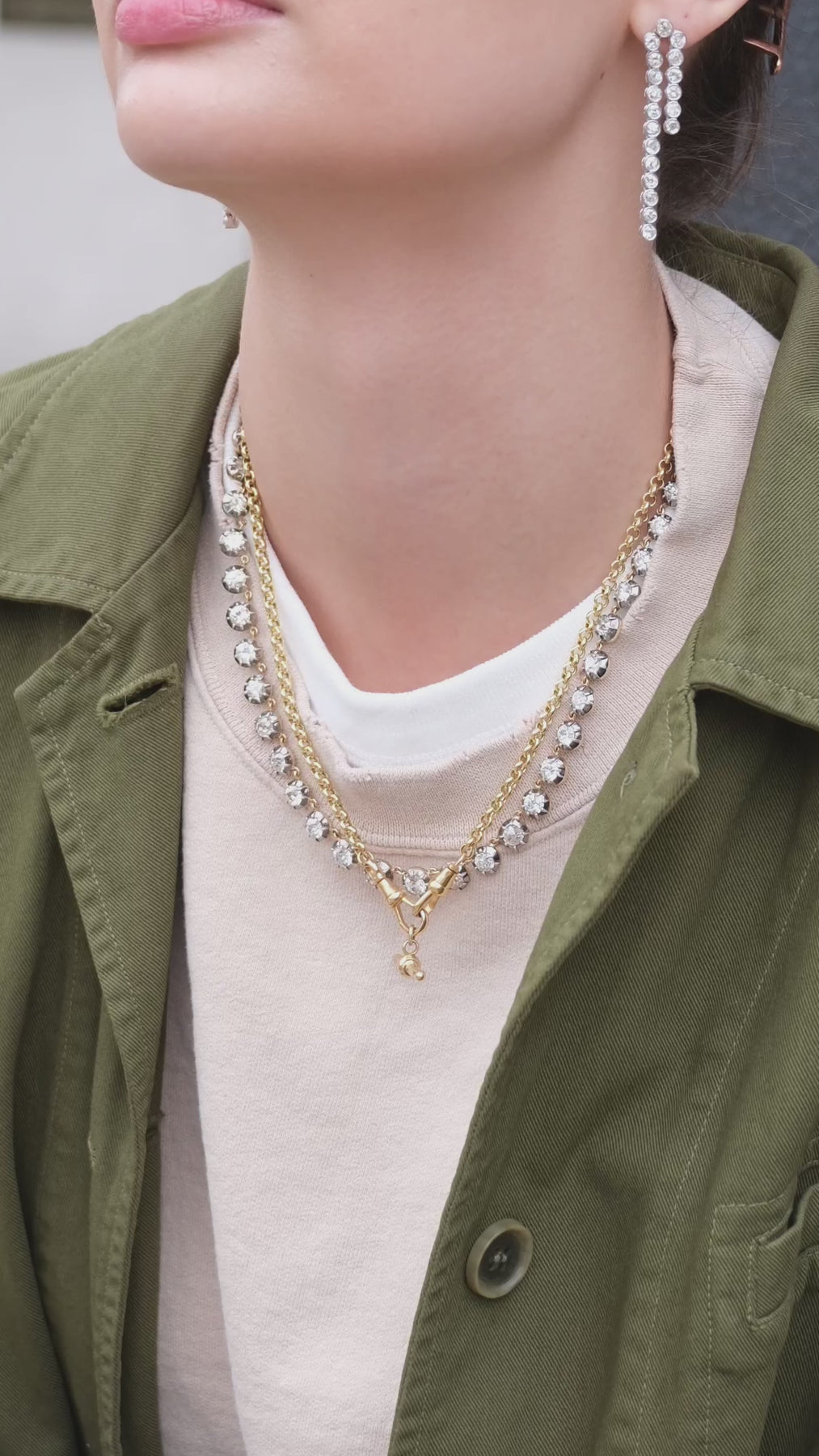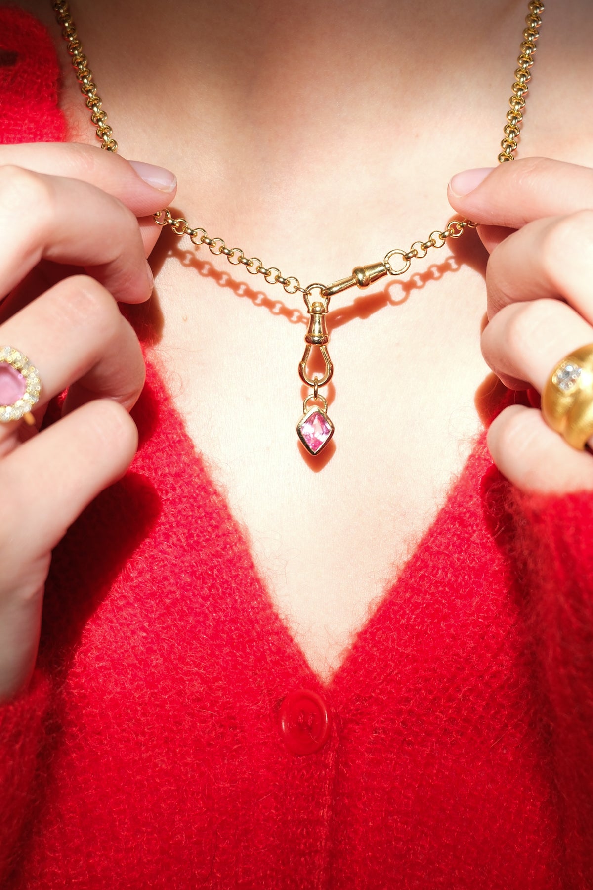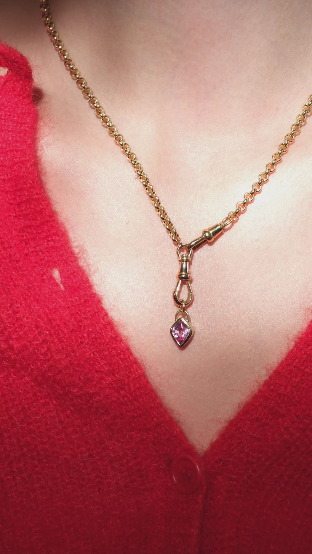 18k rolo (5mm) chain with a pair of antique dog clips and antique 18k T-bar