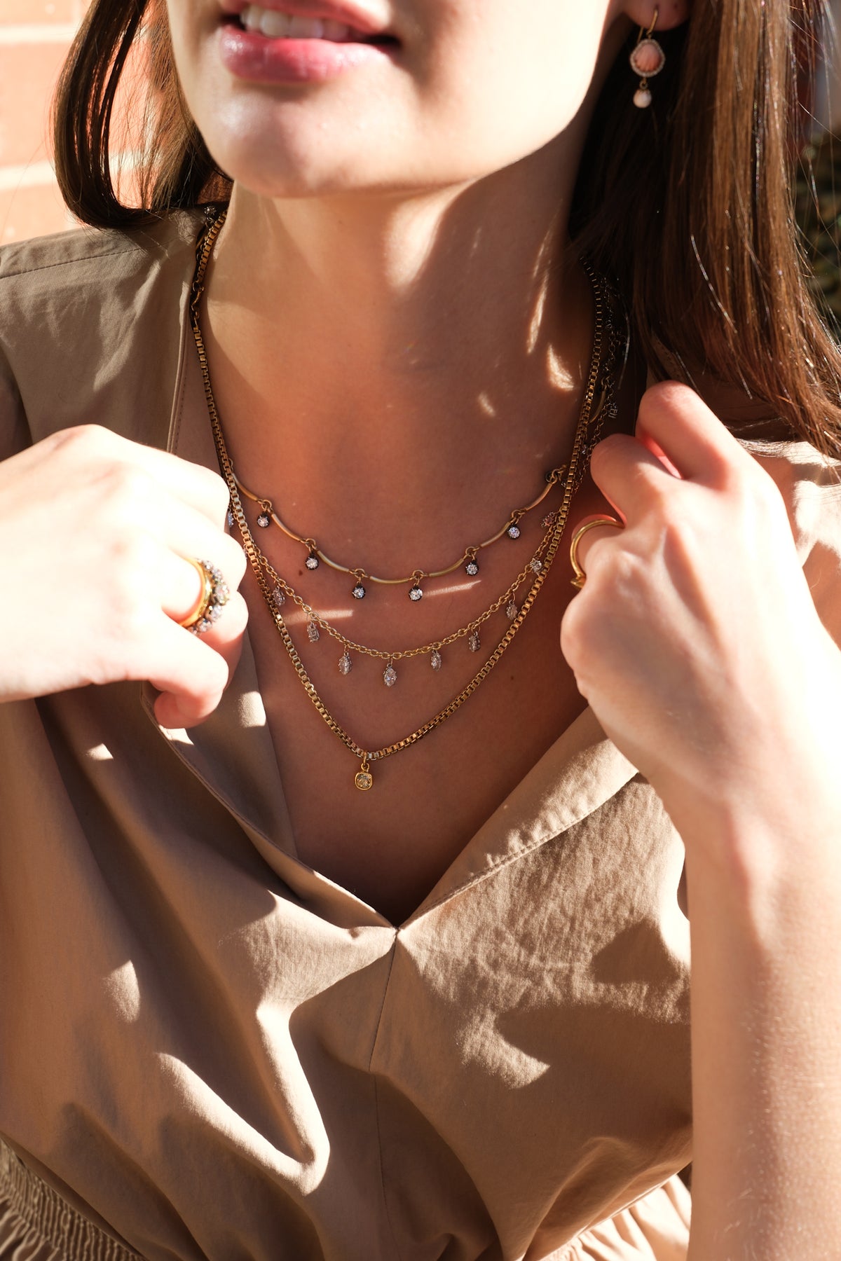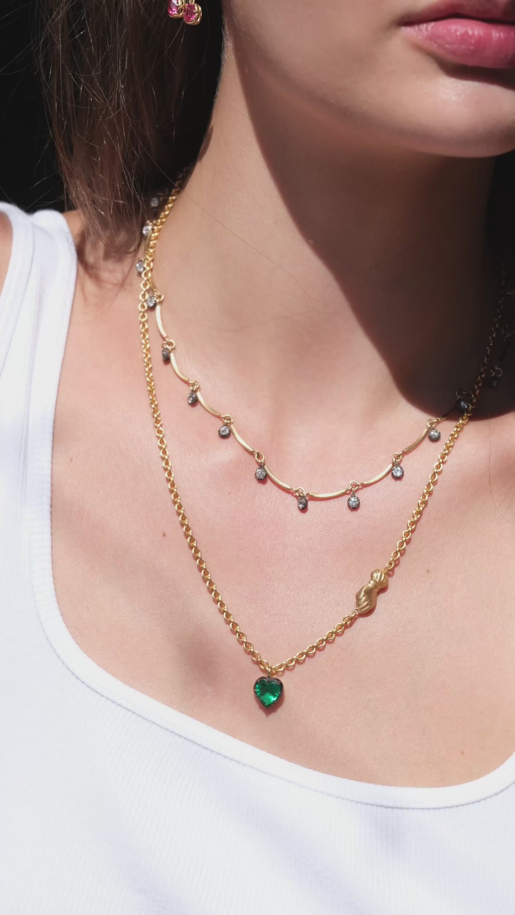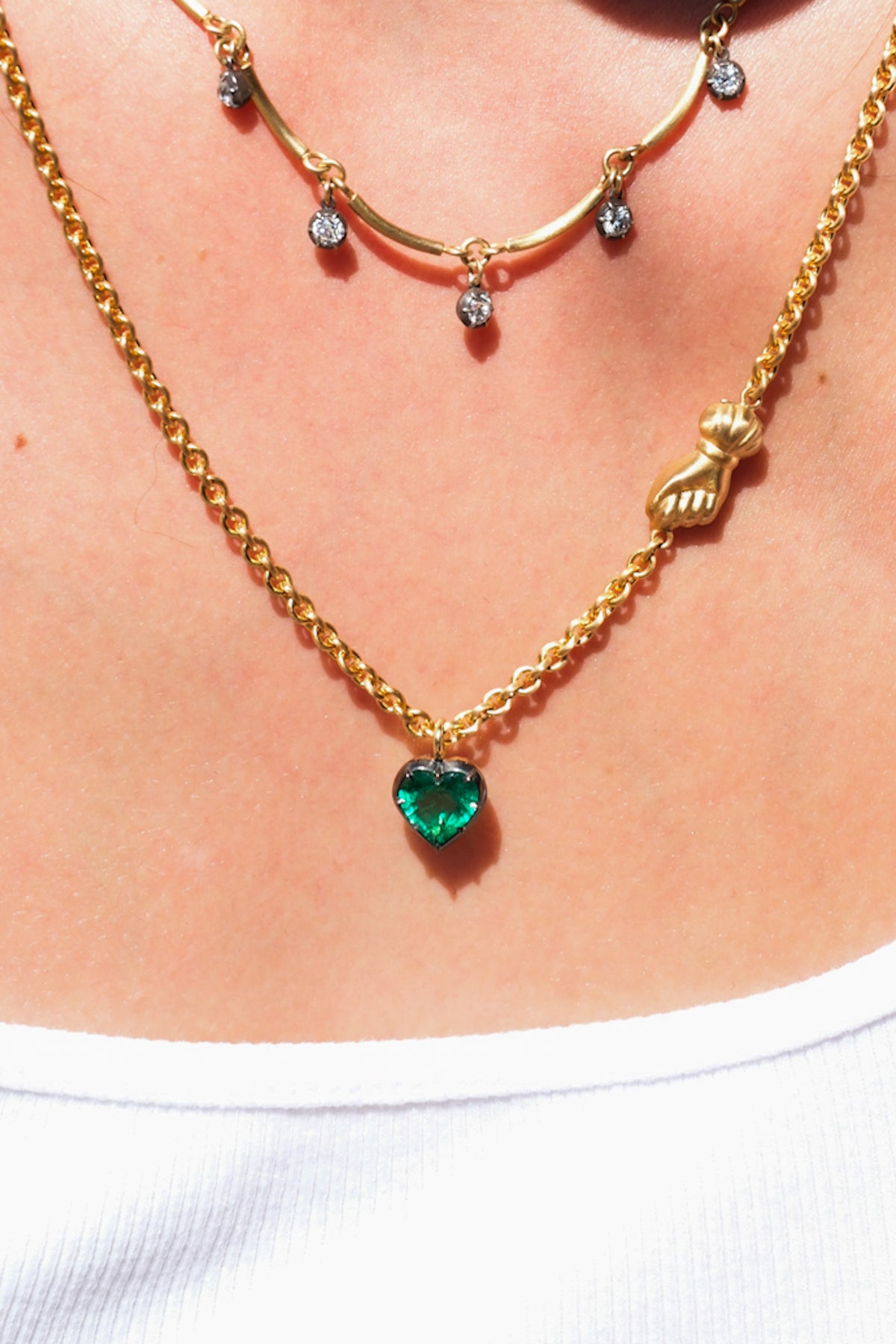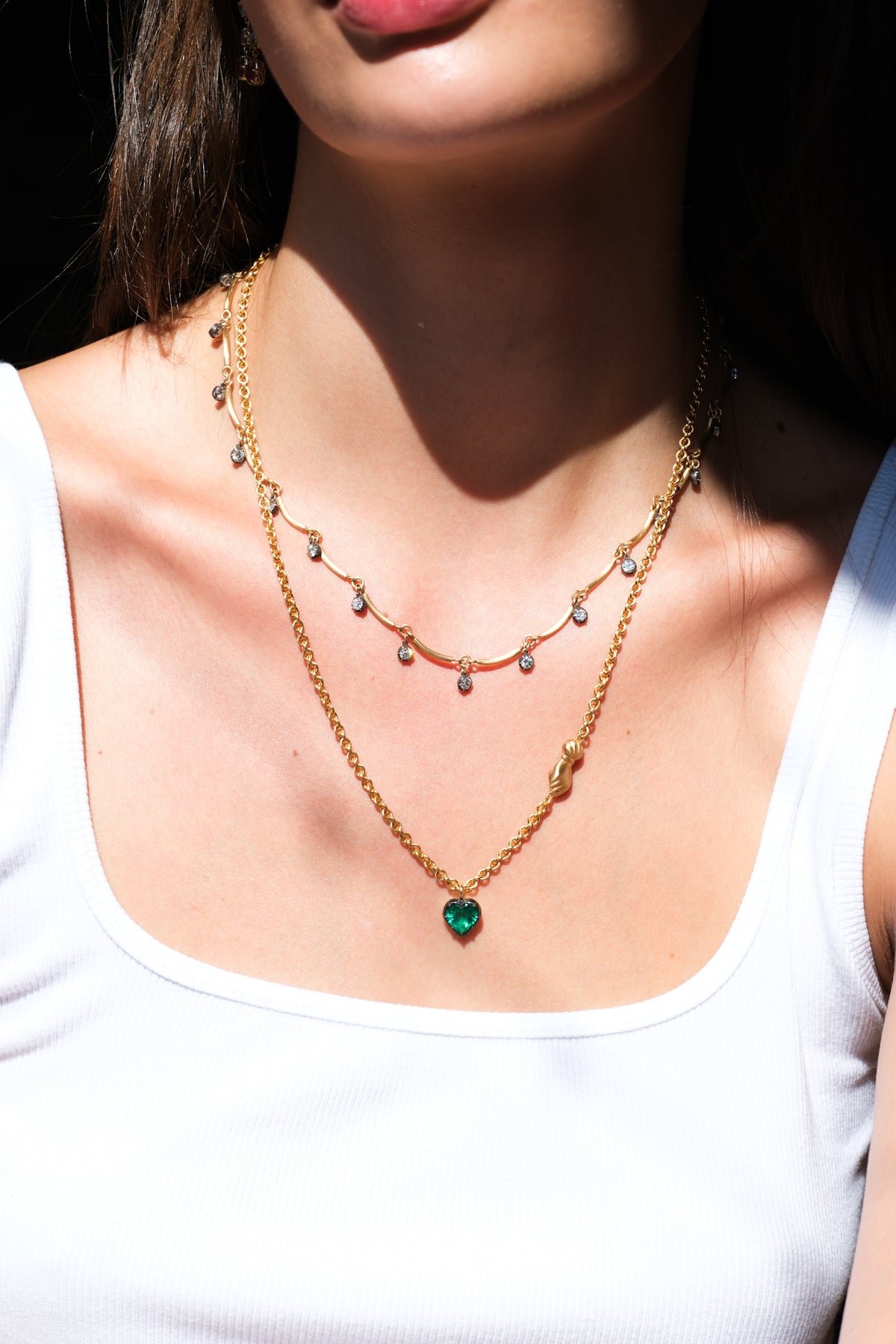 18k handmade scallop chain with 3.63 ct old European cut diamonds in oxidized silver collets that go all the way around.