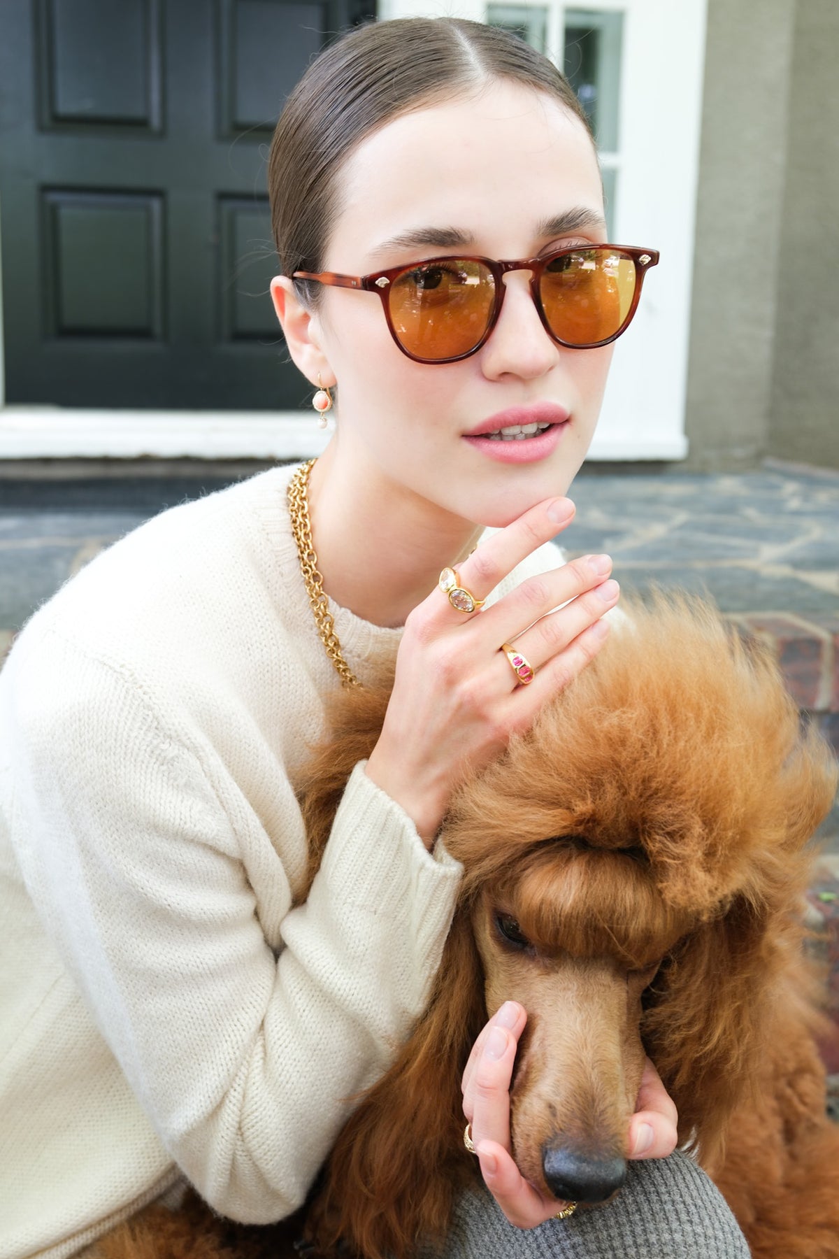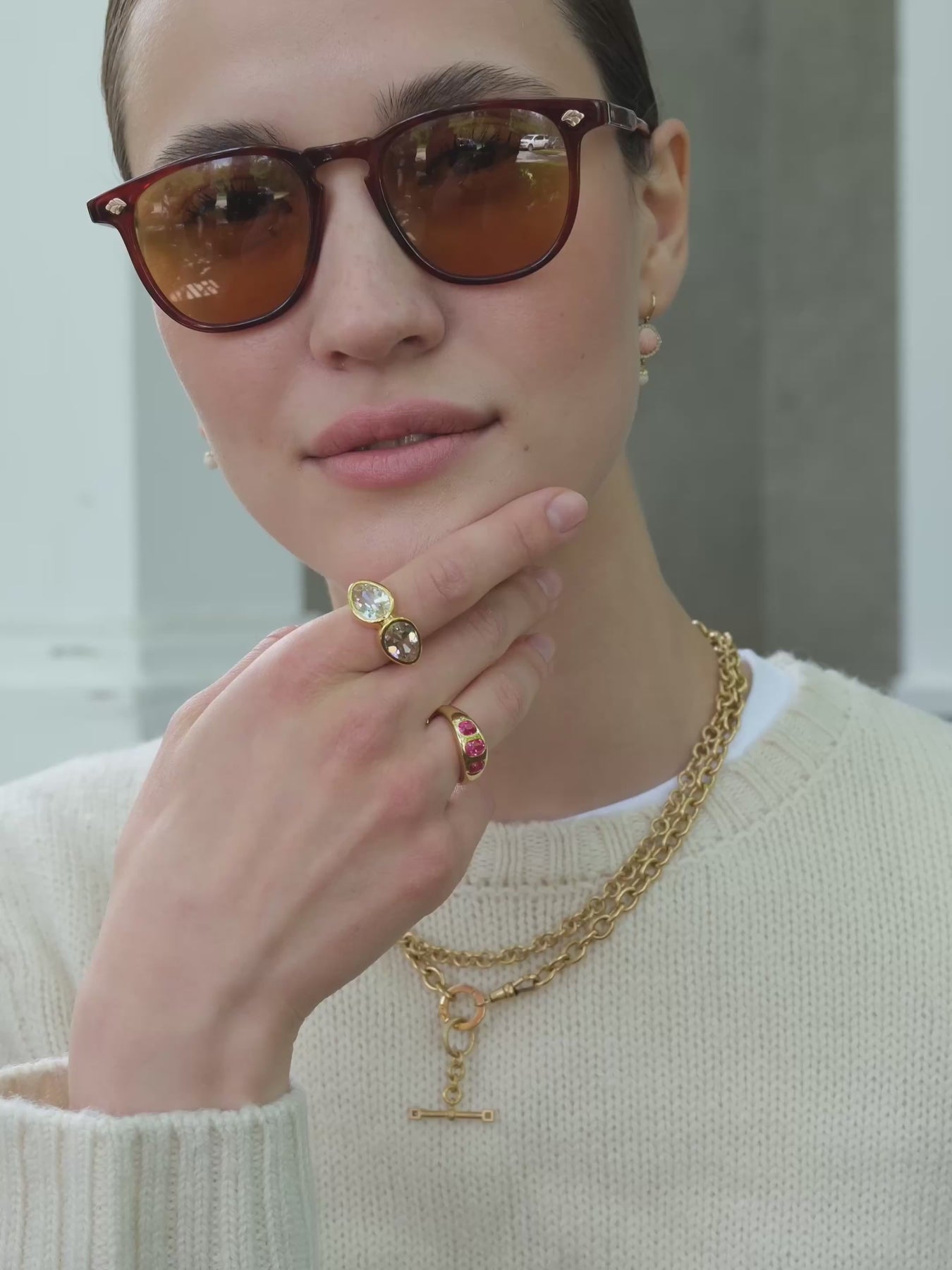 Hand carved shells with diamonds and natural scallop pearls in 18k gold