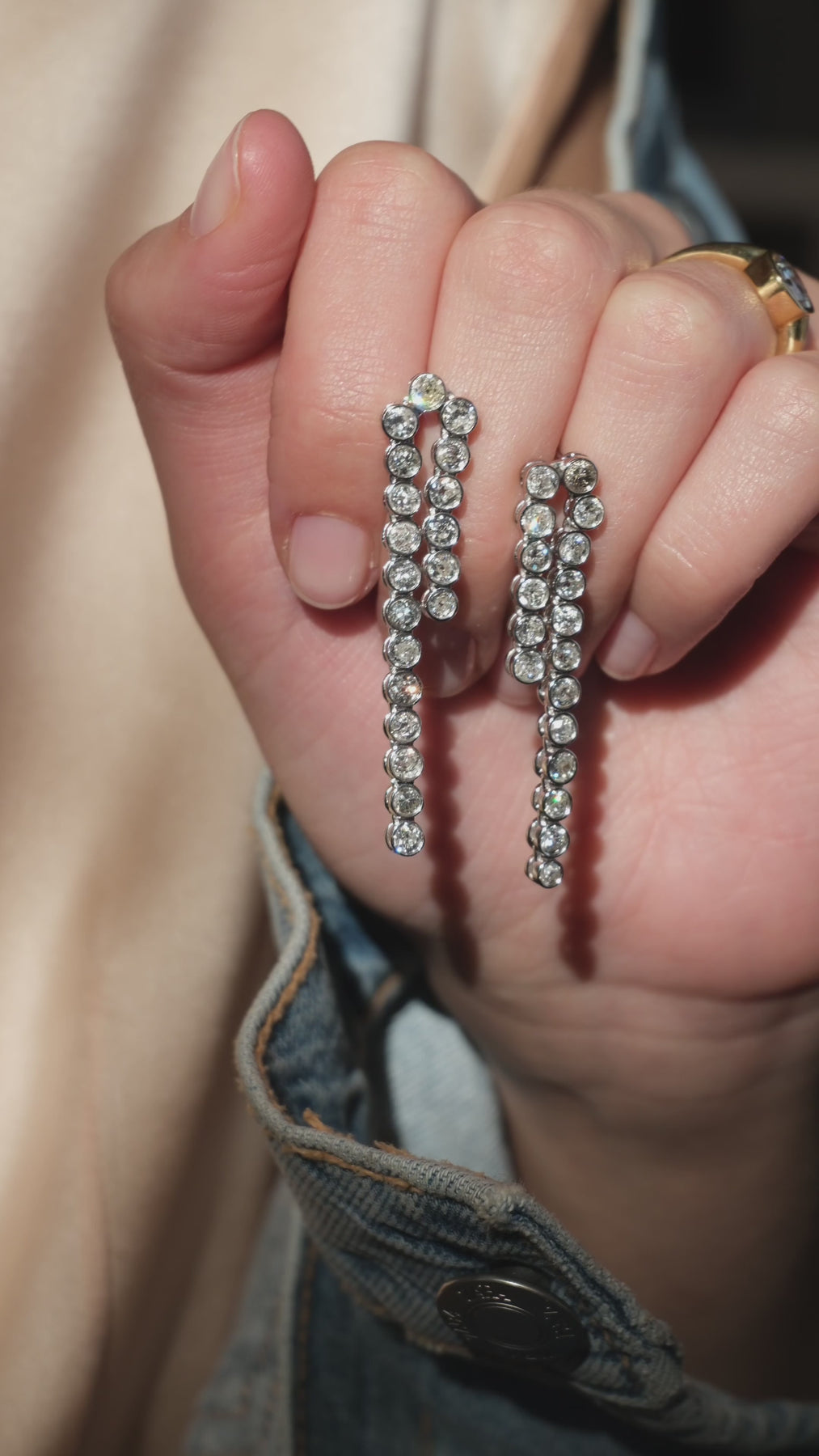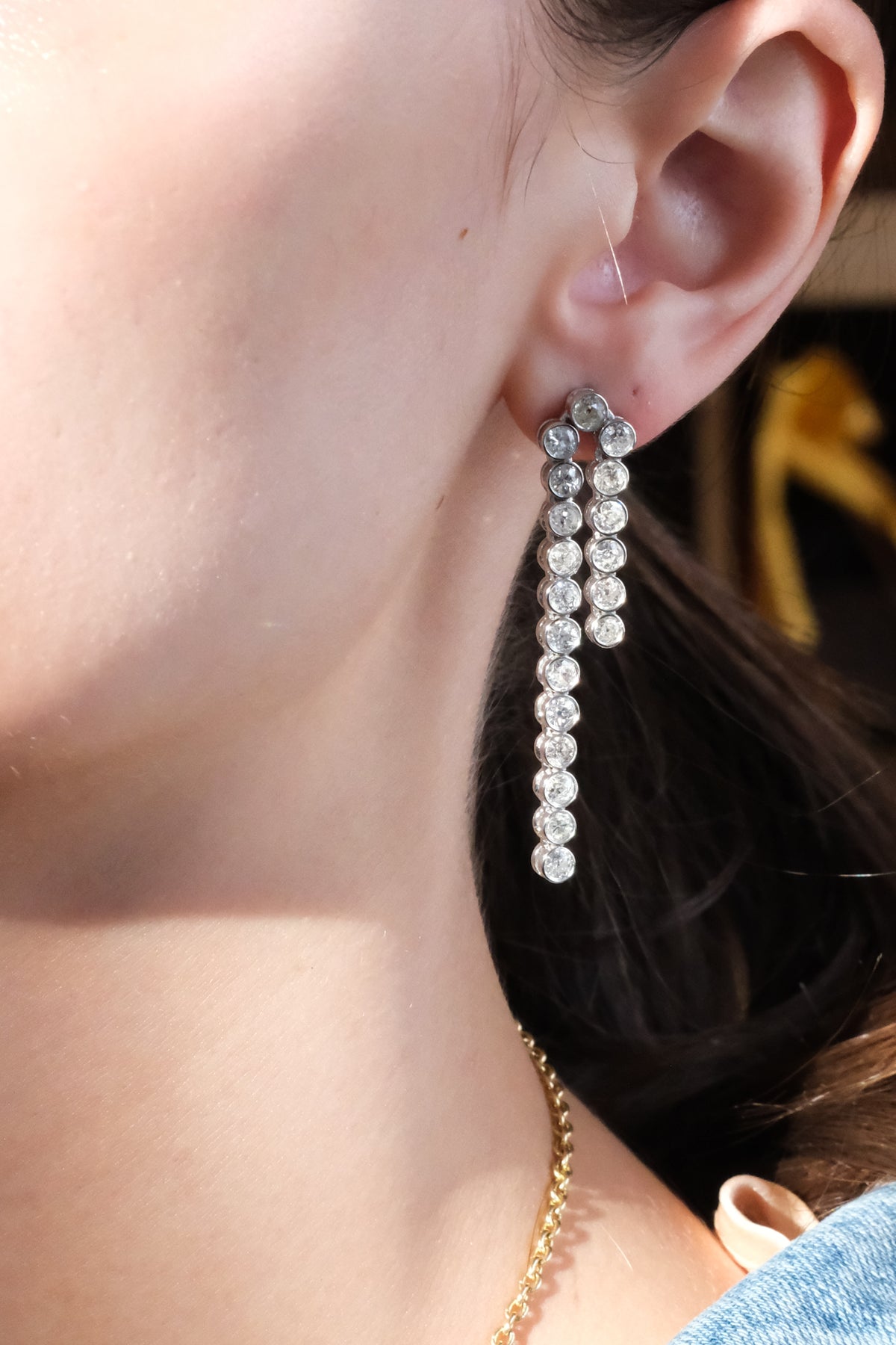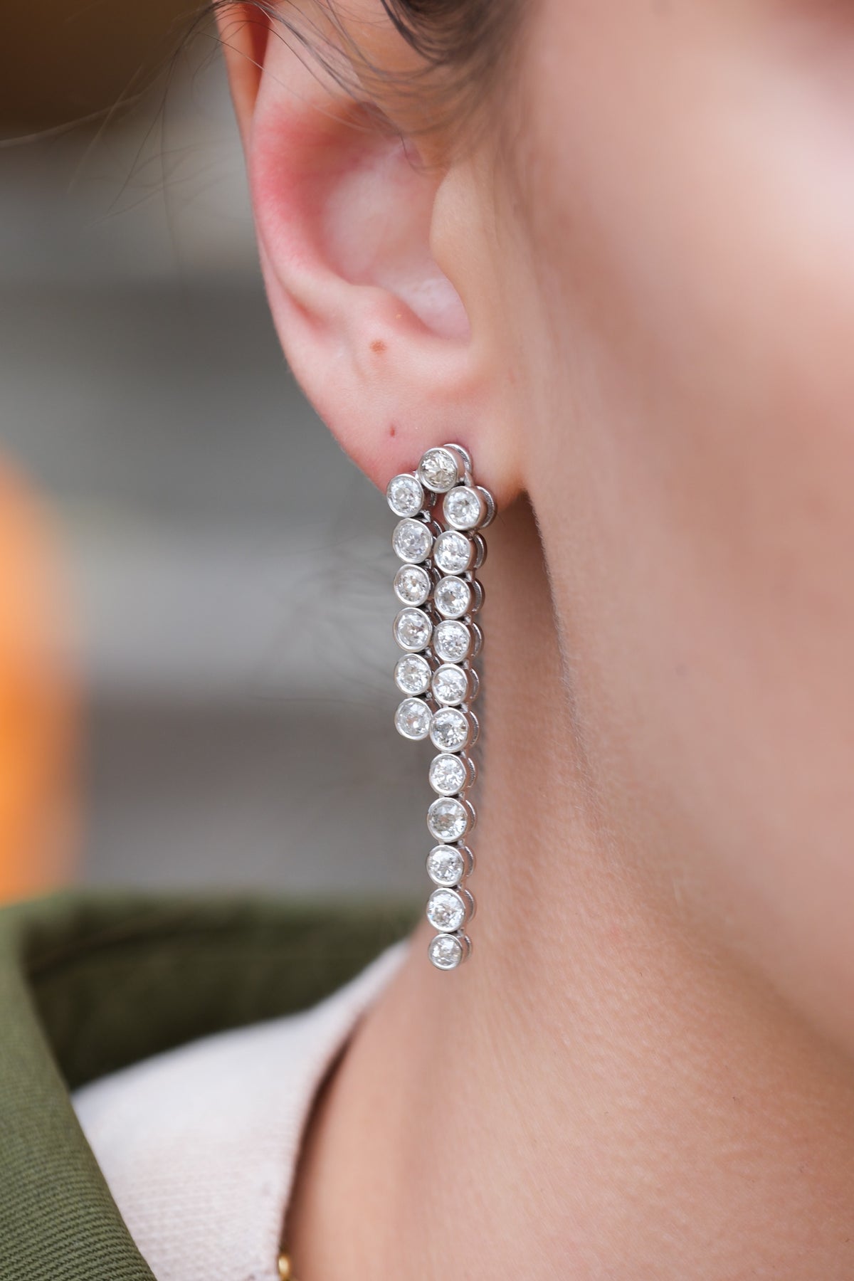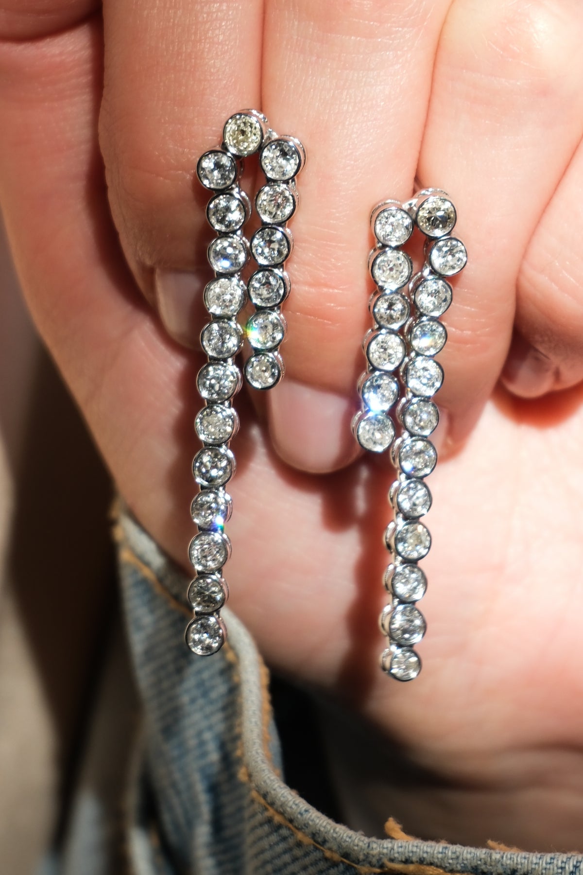 4.97 CT old mine cut diamonds earrings in 18k white gold