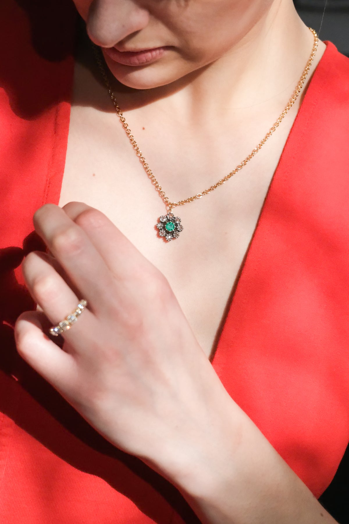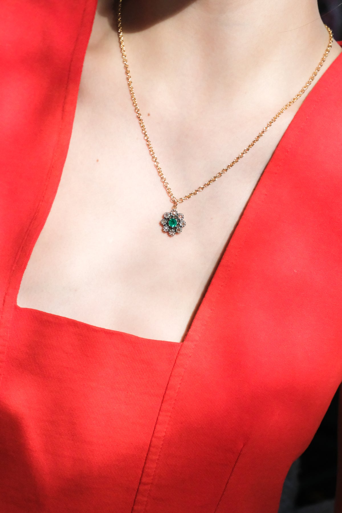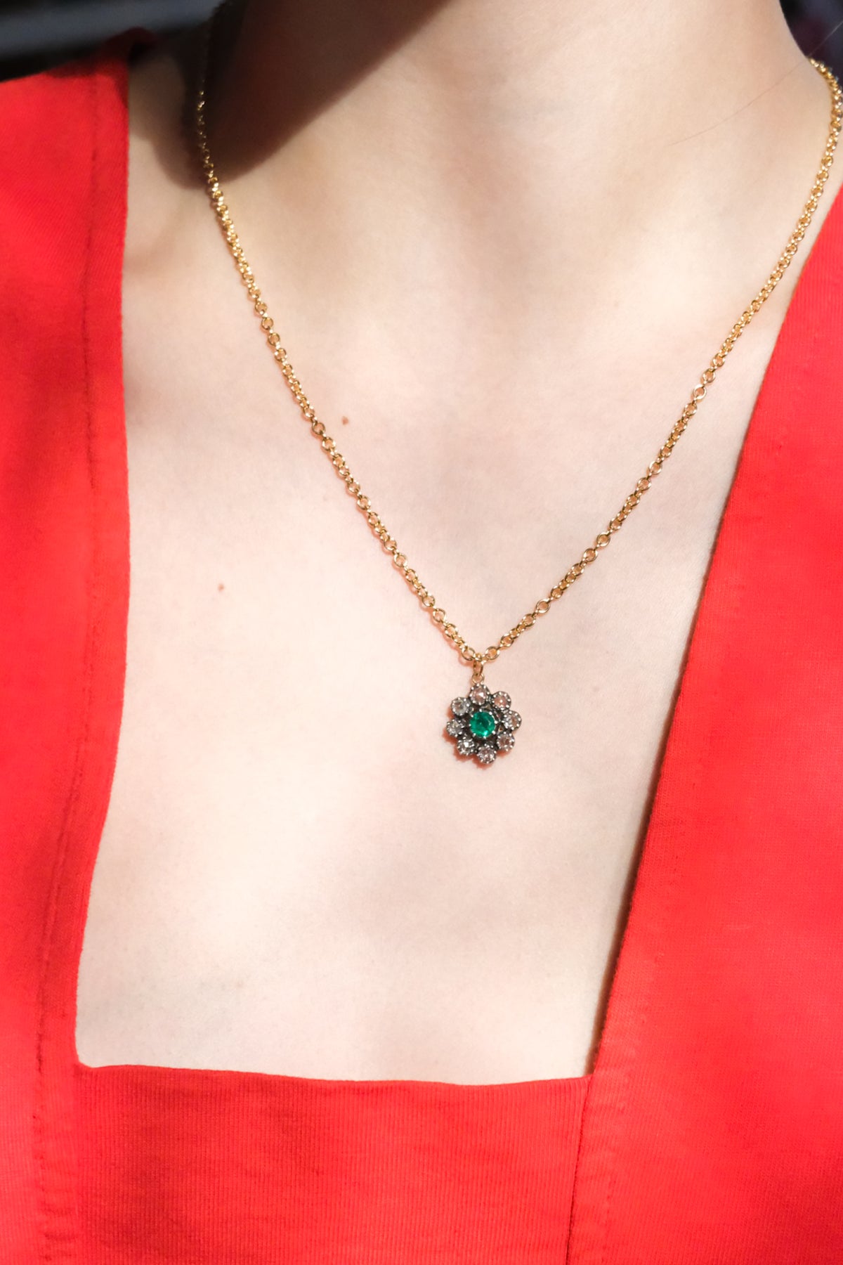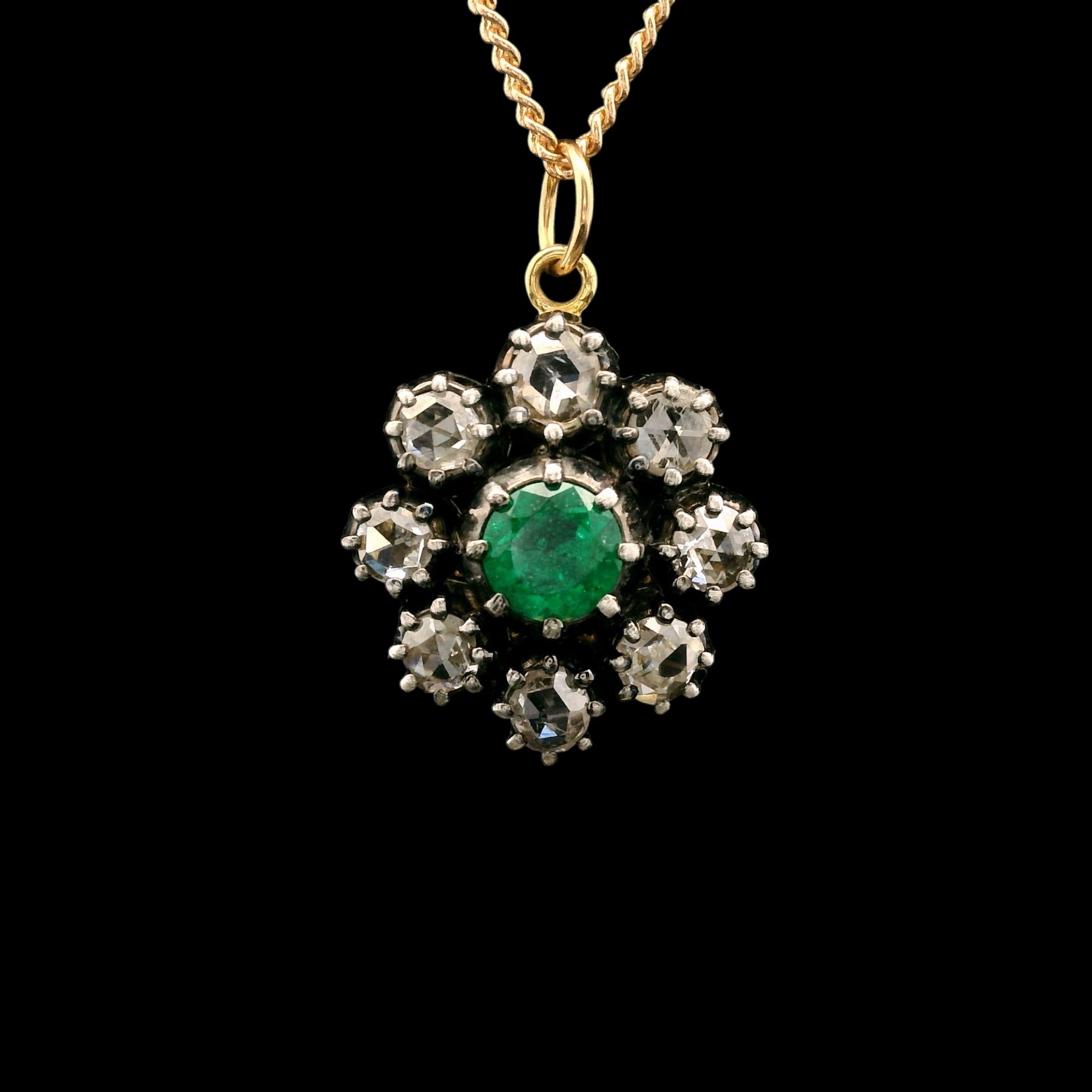 .33ct muzo Colombian emerald  And .70 ct antique rosecut diamond pendant