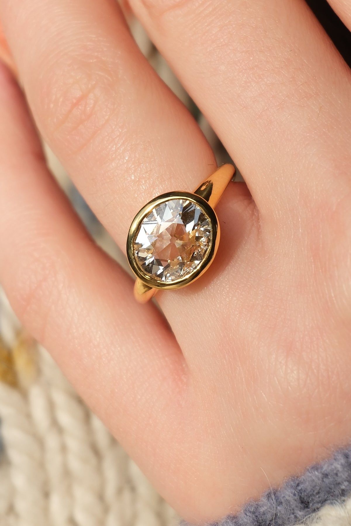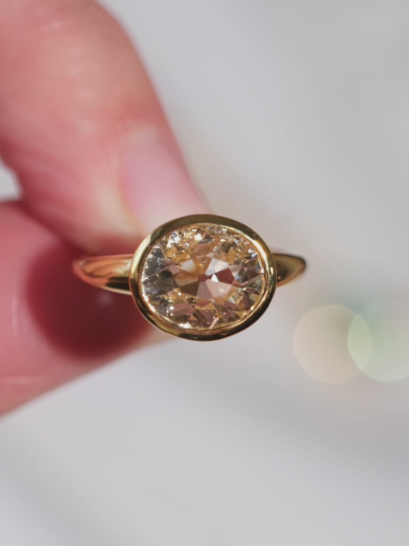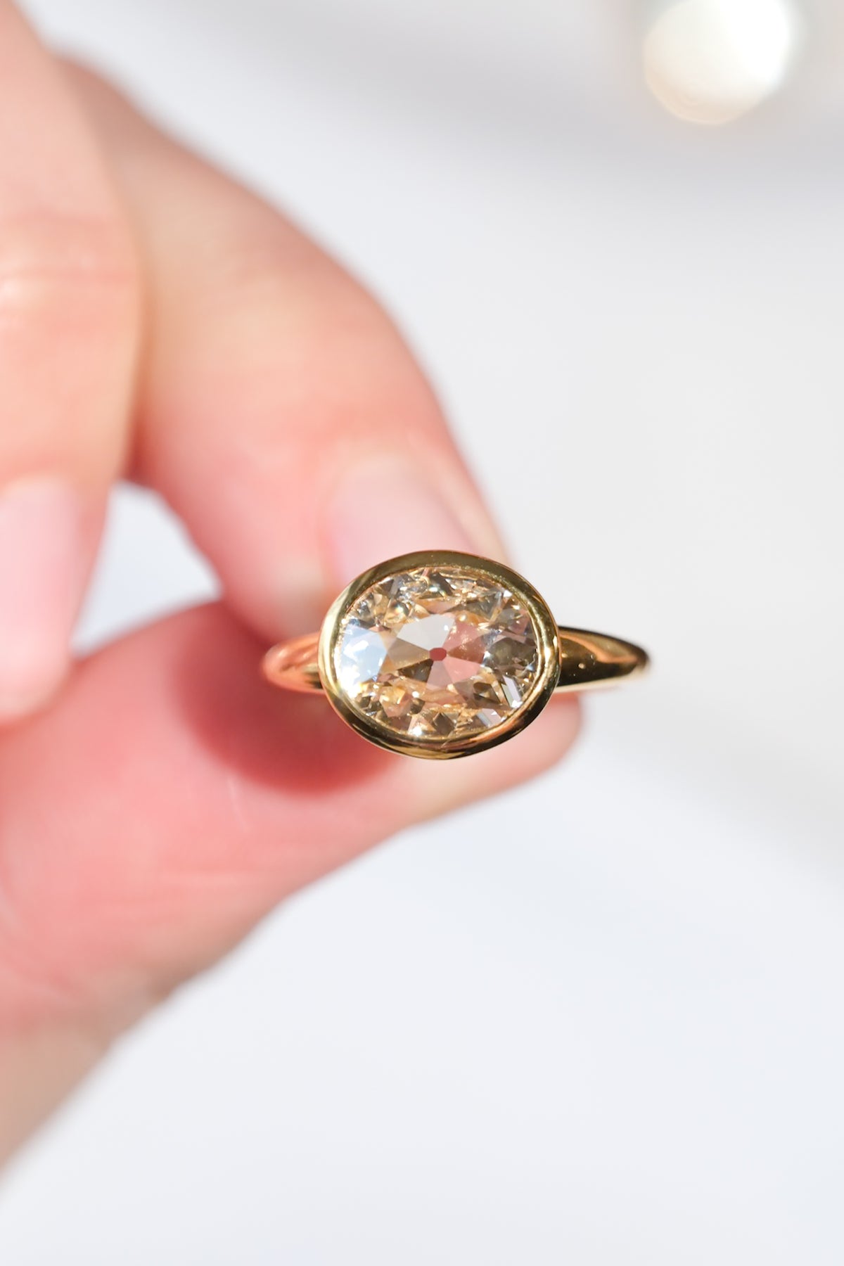 Extremely spready 2.40 ct (L, VS2) old mine cut diamond ring in 18k gold