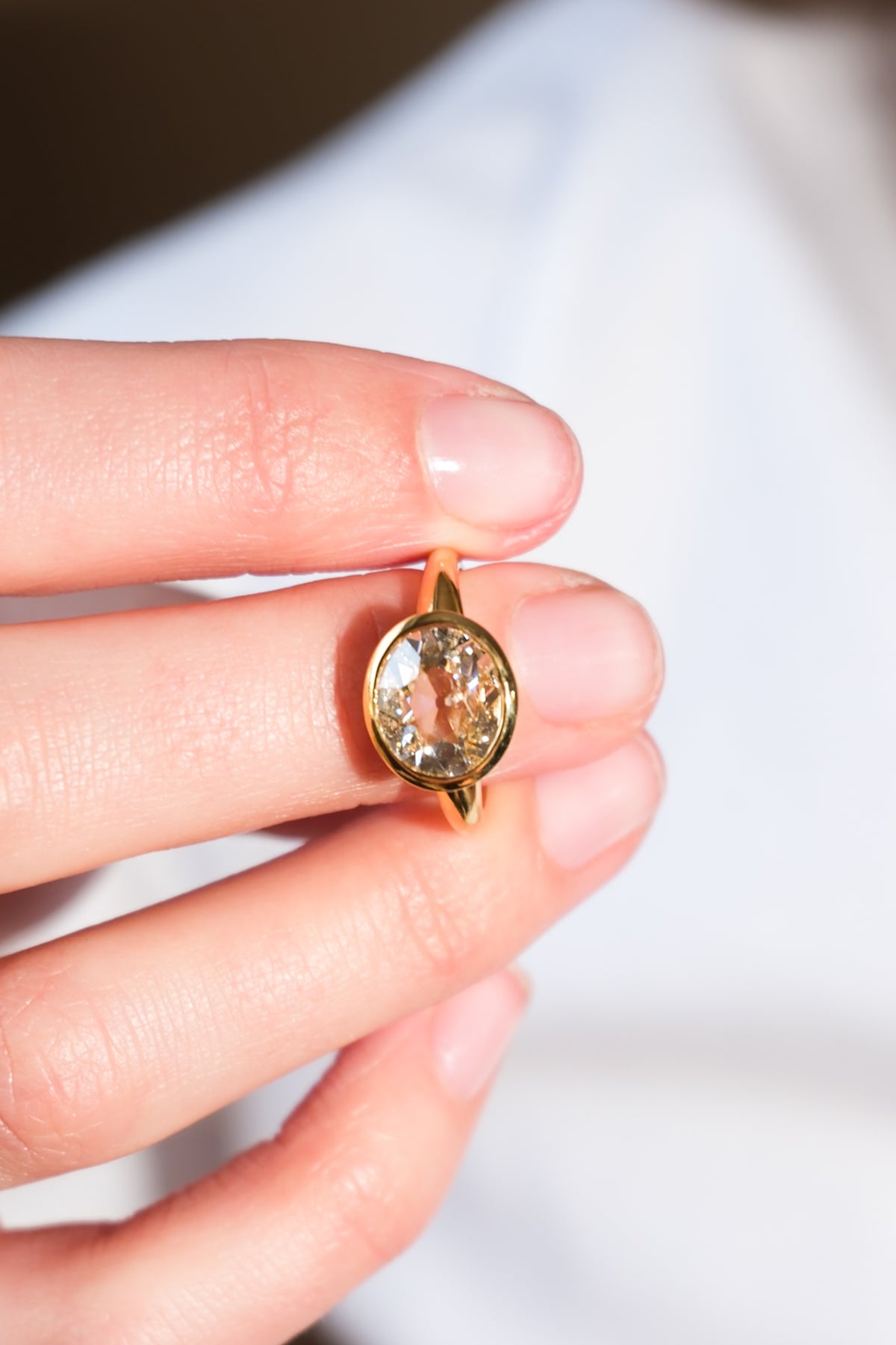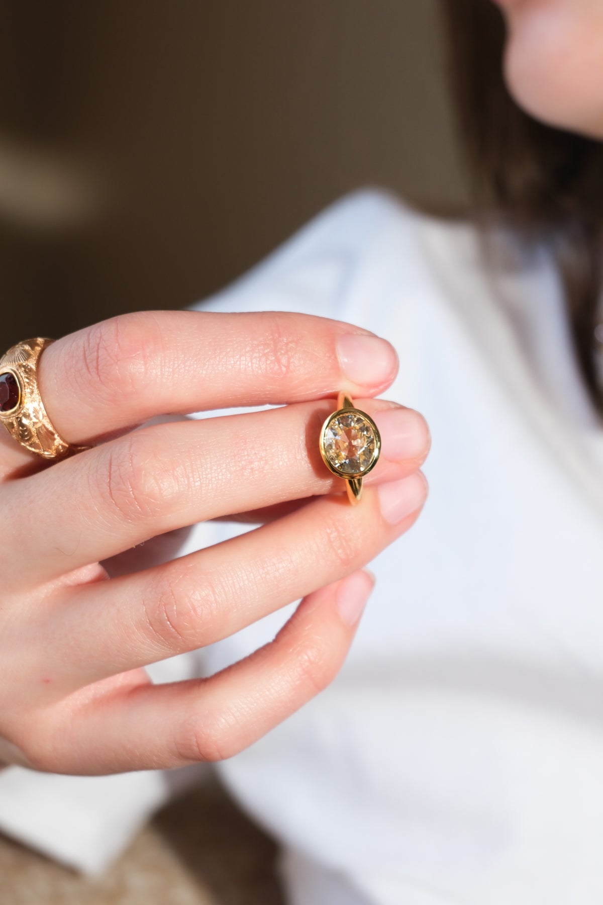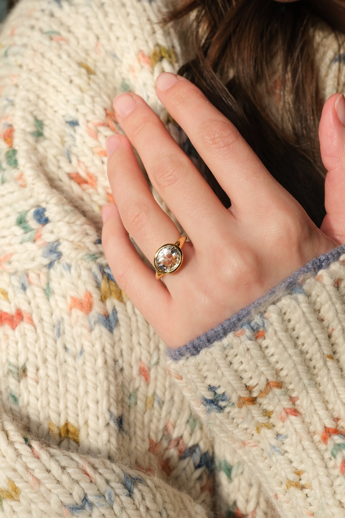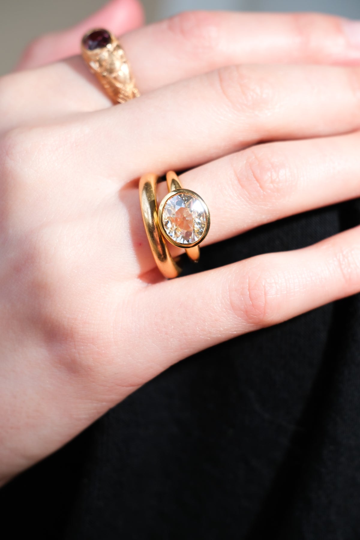 Extremely spready 2.40 ct (L, VS2) old mine cut diamond ring in 18k gold