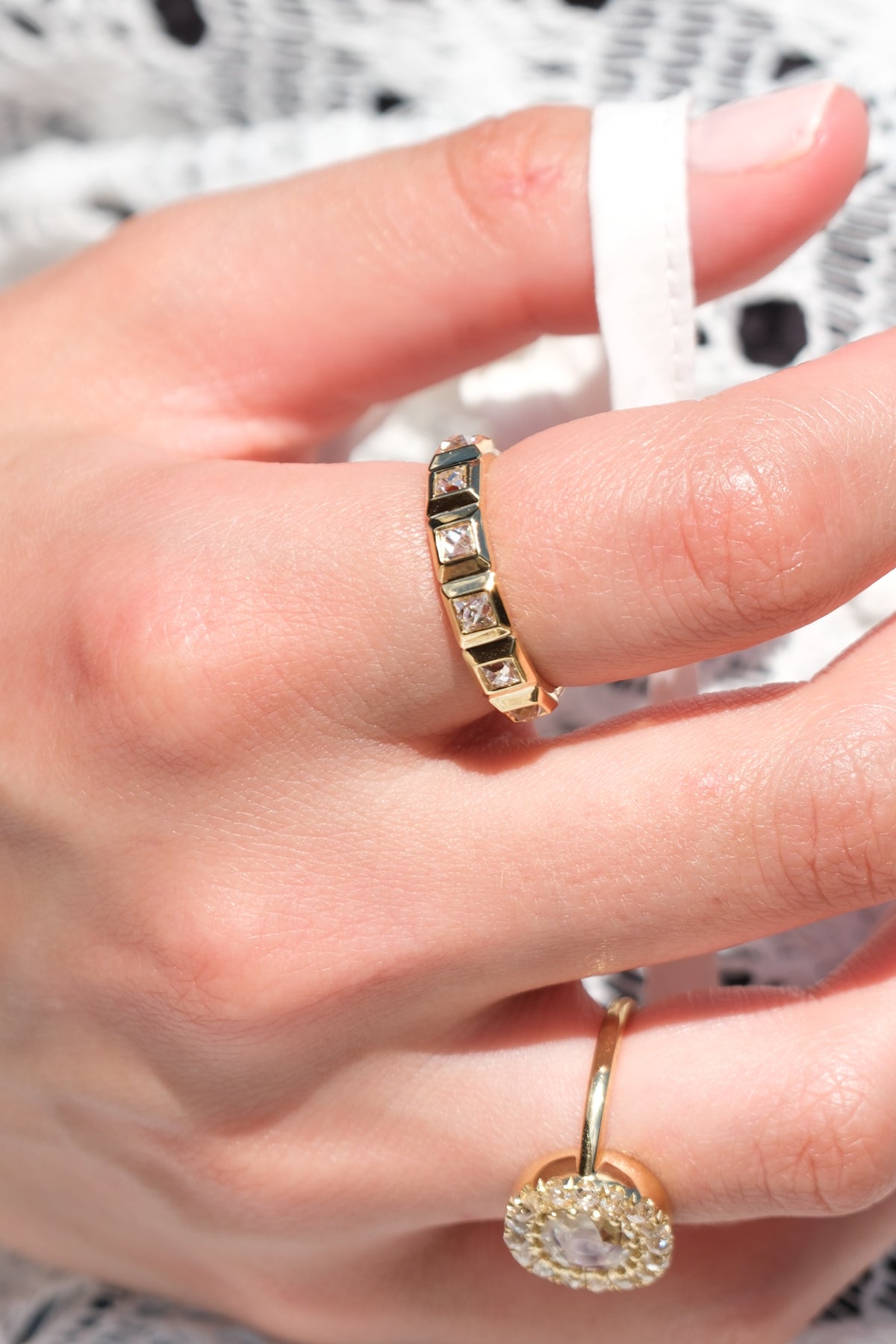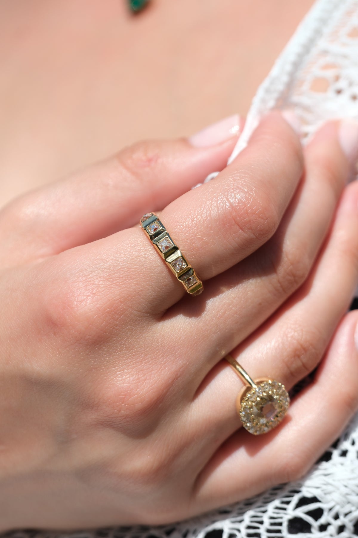 1.1 ct antique French cut diamonds half hoop in 18k gold