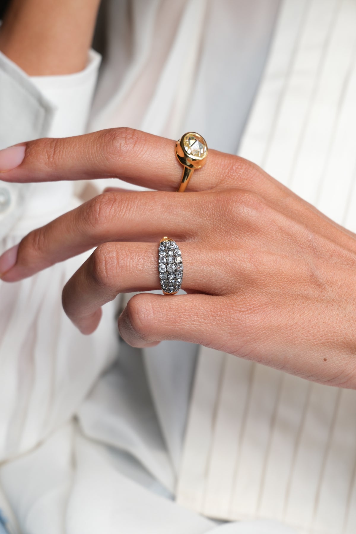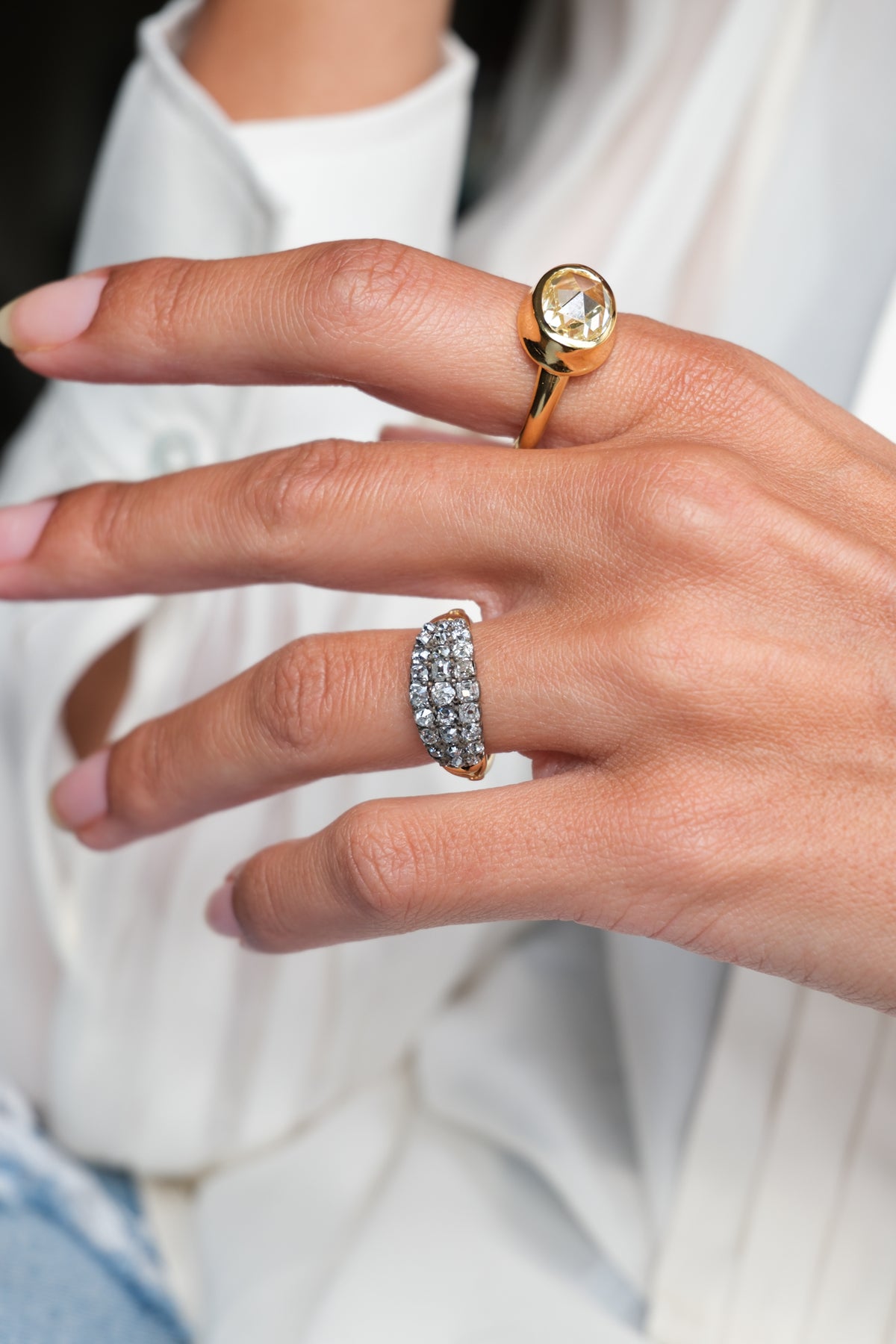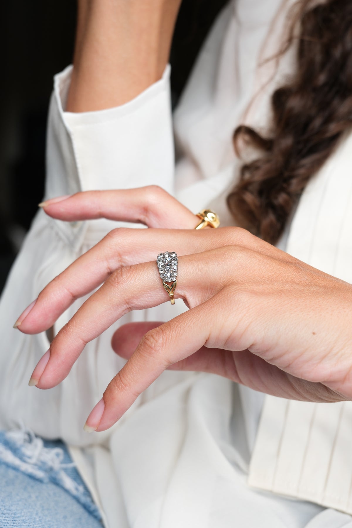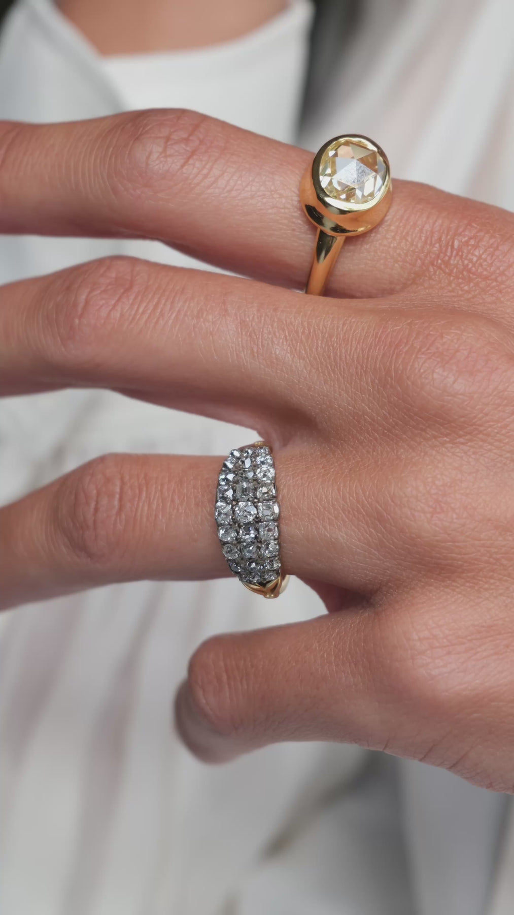 1.9 ct 3 row antique peruzzi, Mazarin and old mine diamond ring