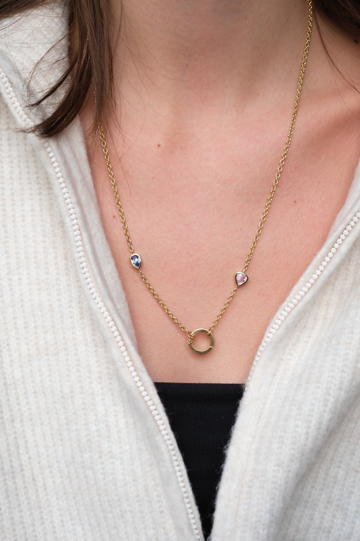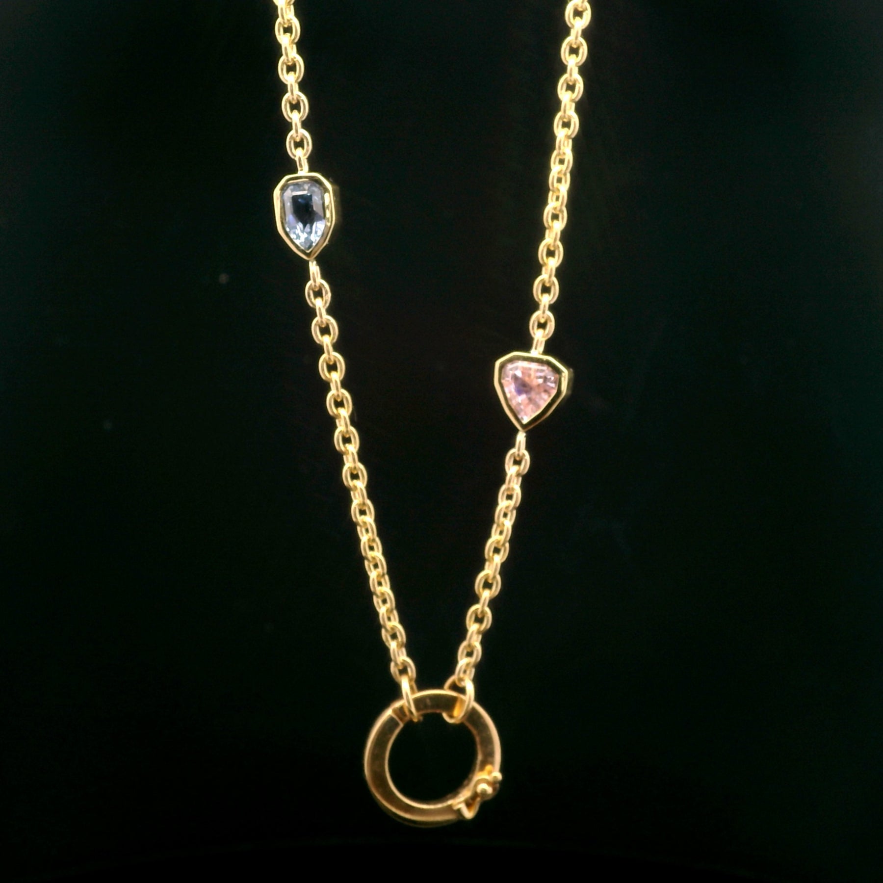 1.73 ct unheated sapphires on a 20” solid chain with 18k bolt charm