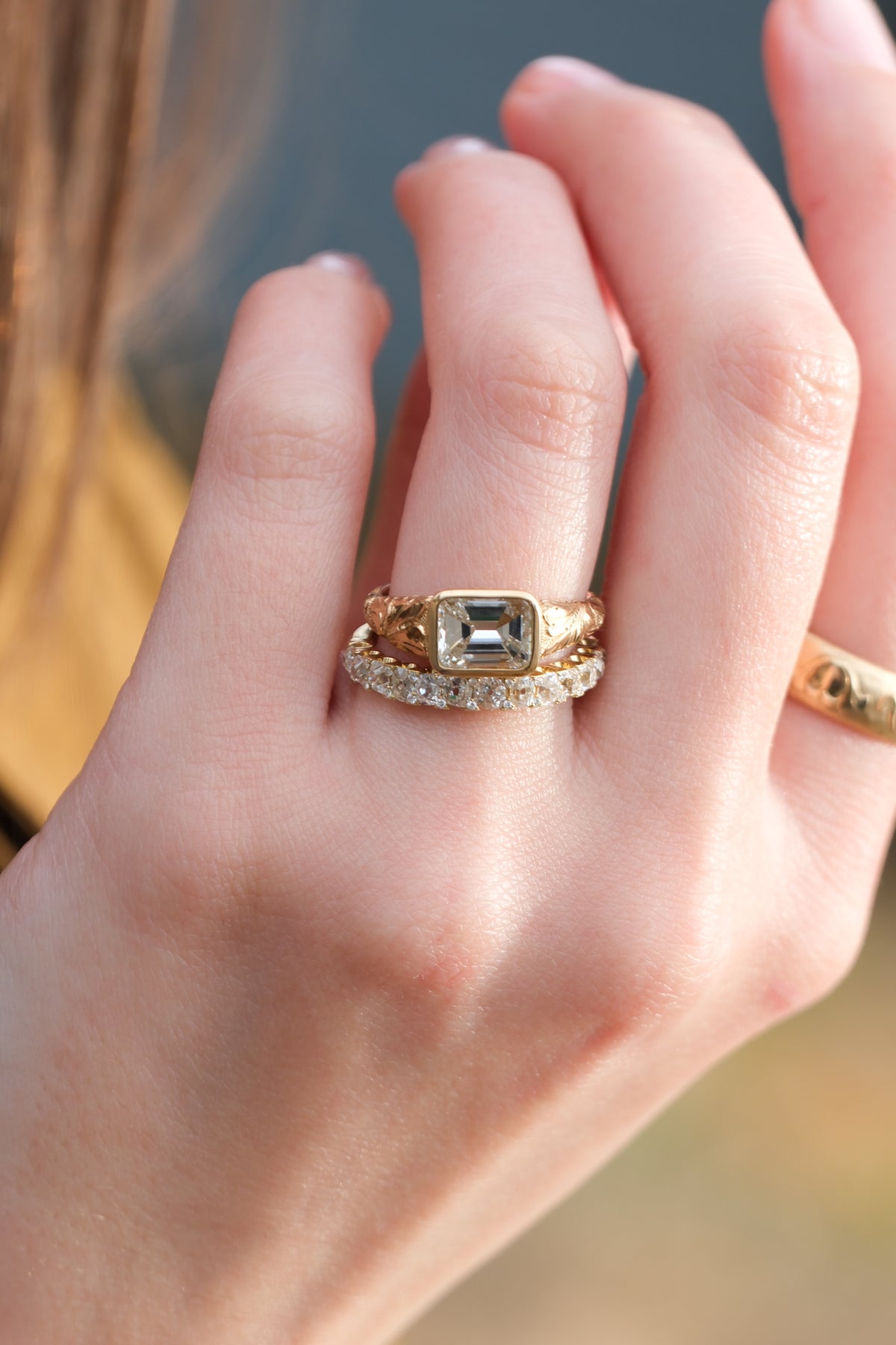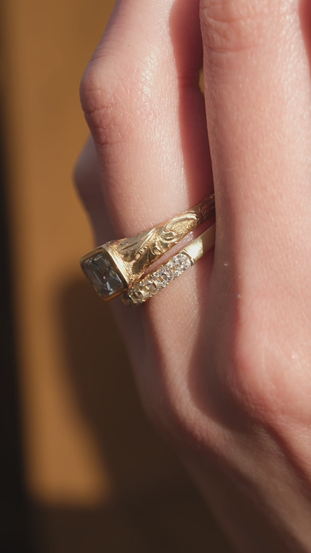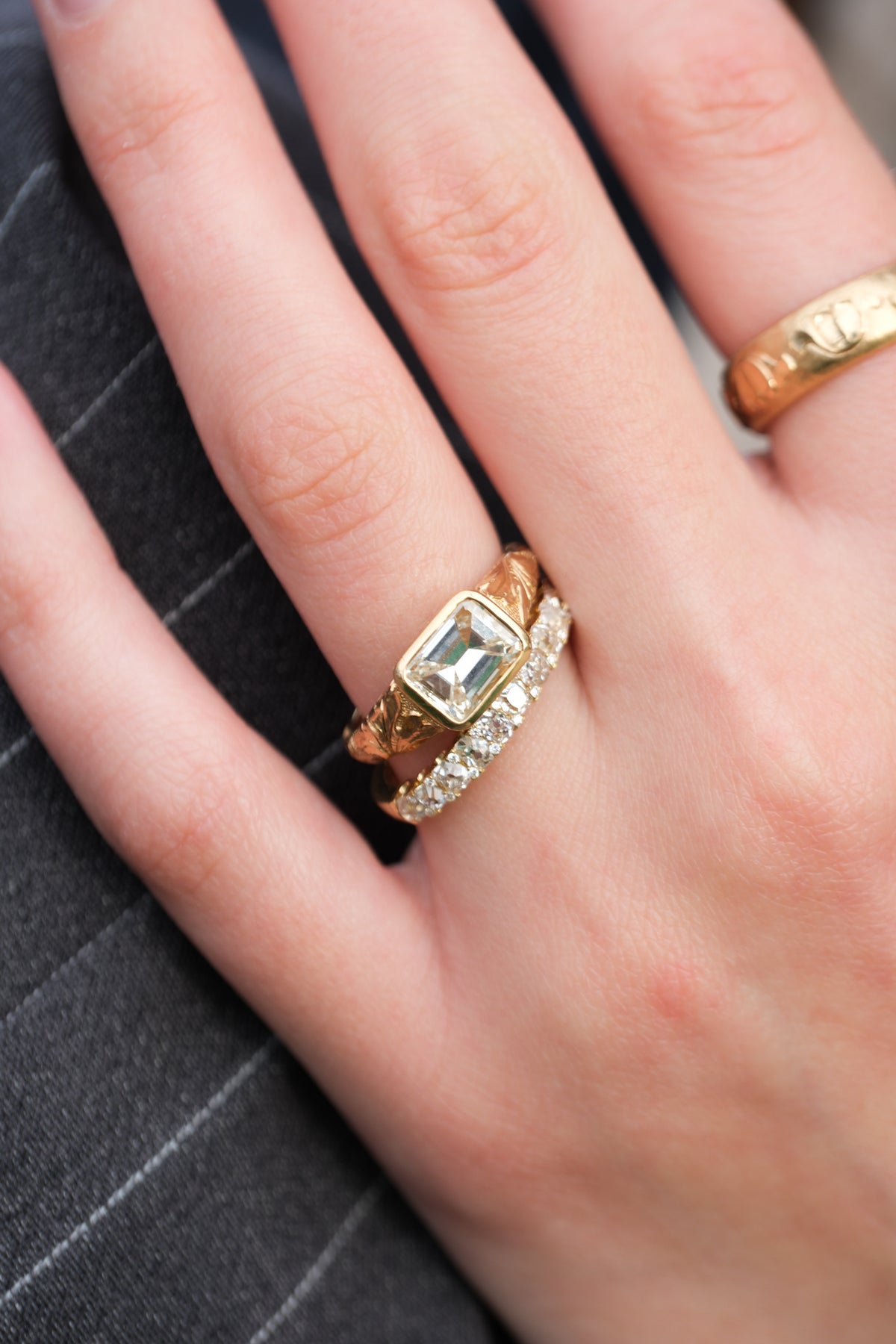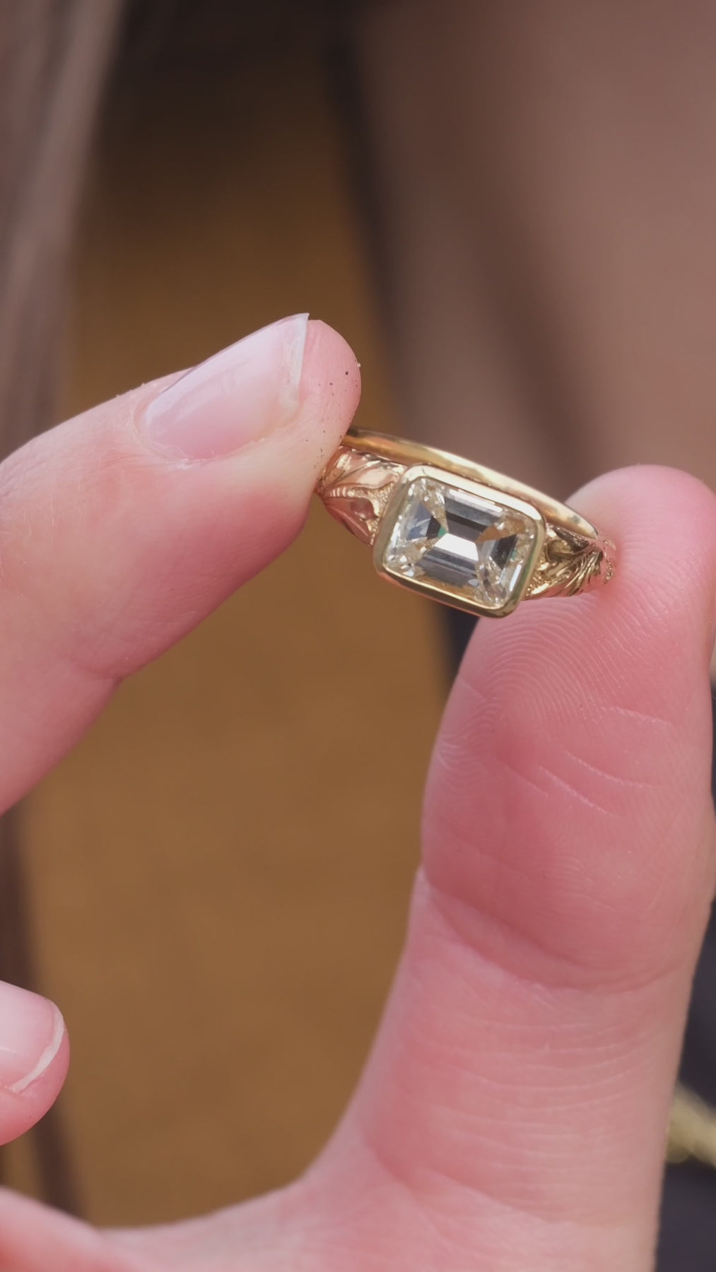 Hand engraved, 1.74 ct antique emerald cut with Maltese cross