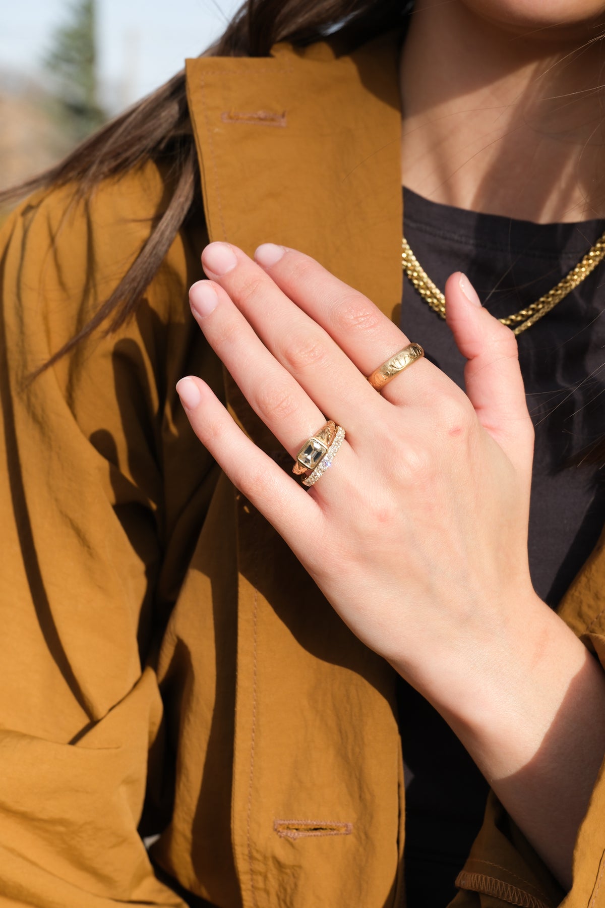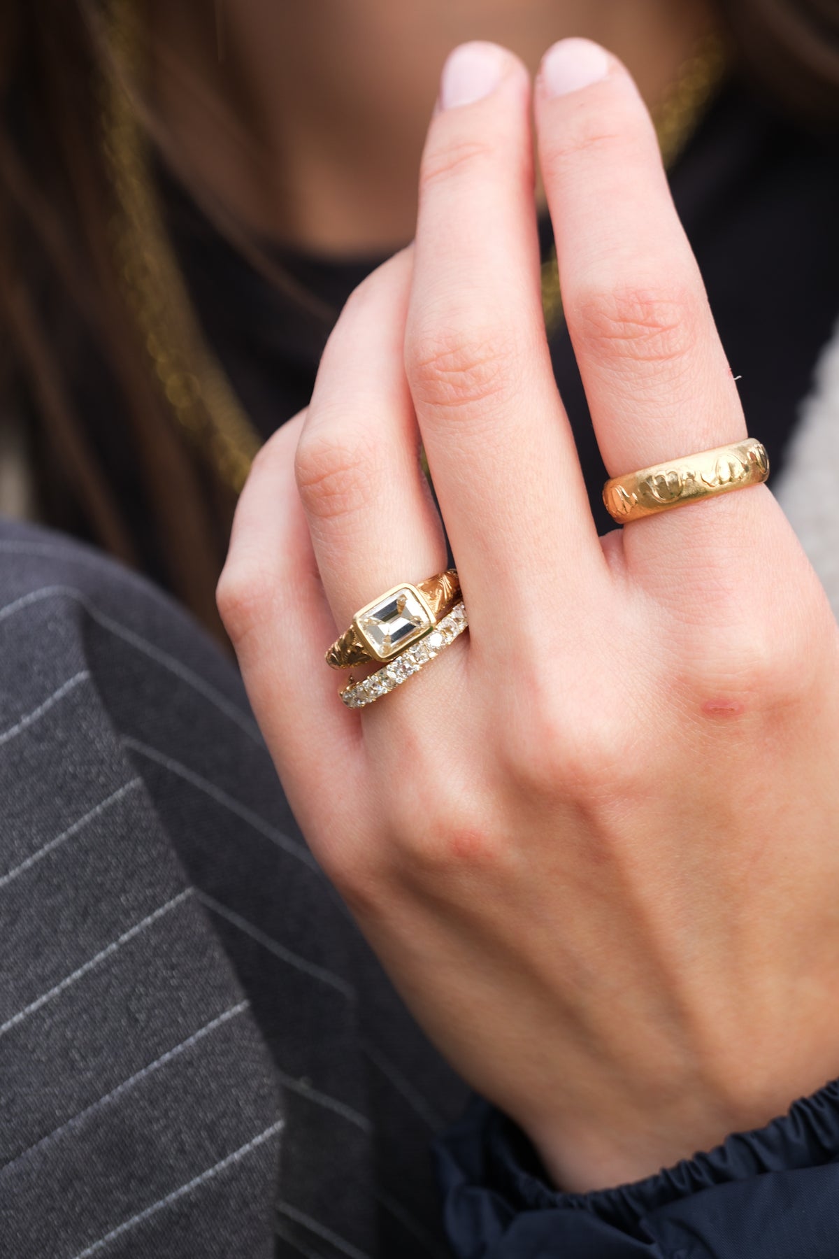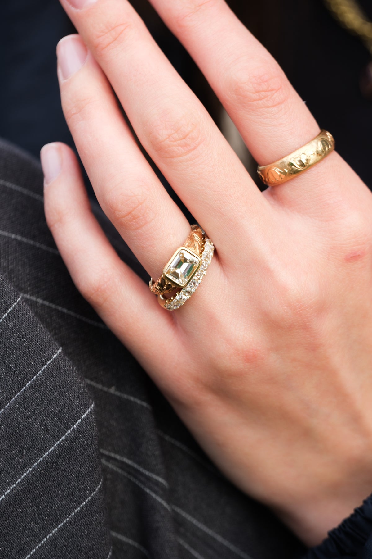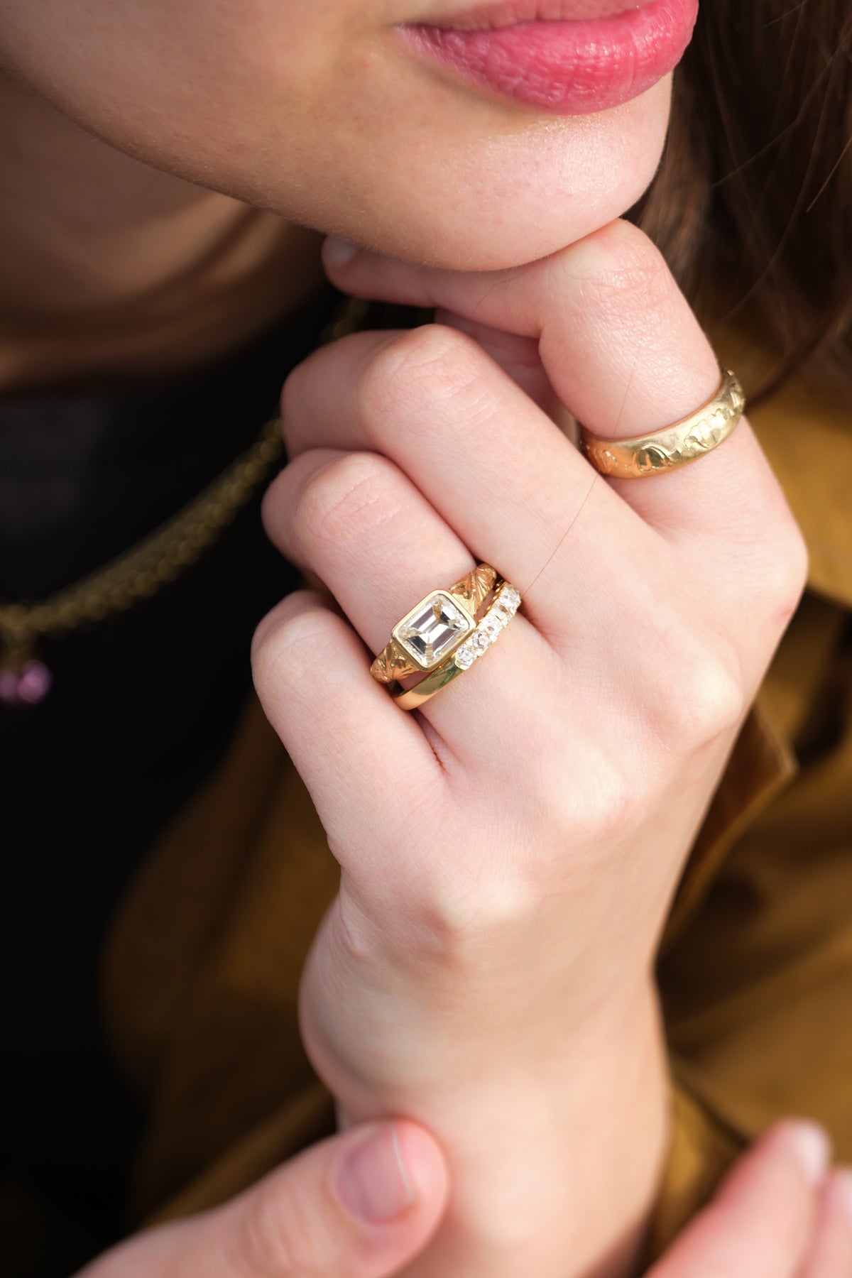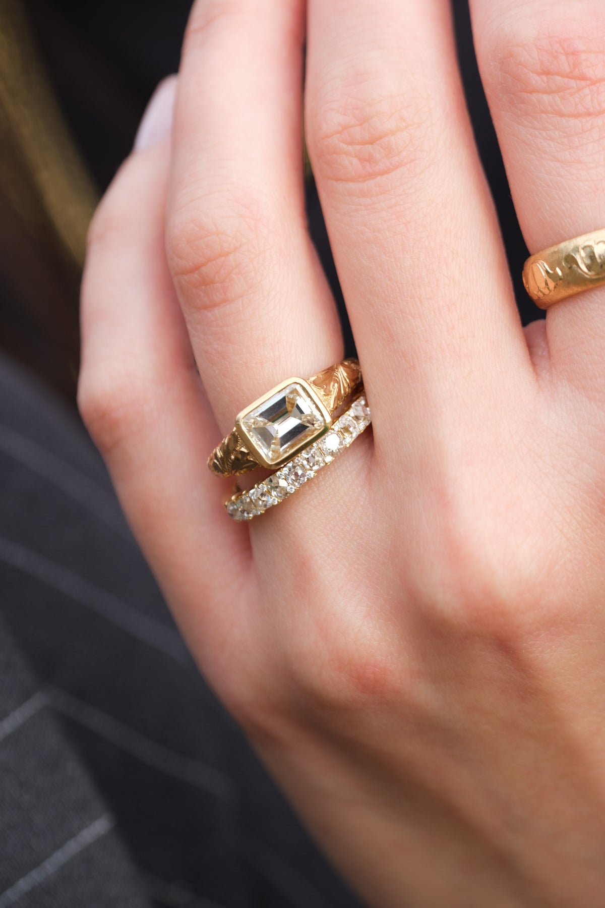 Hand engraved, 1.74 ct antique emerald cut with Maltese cross