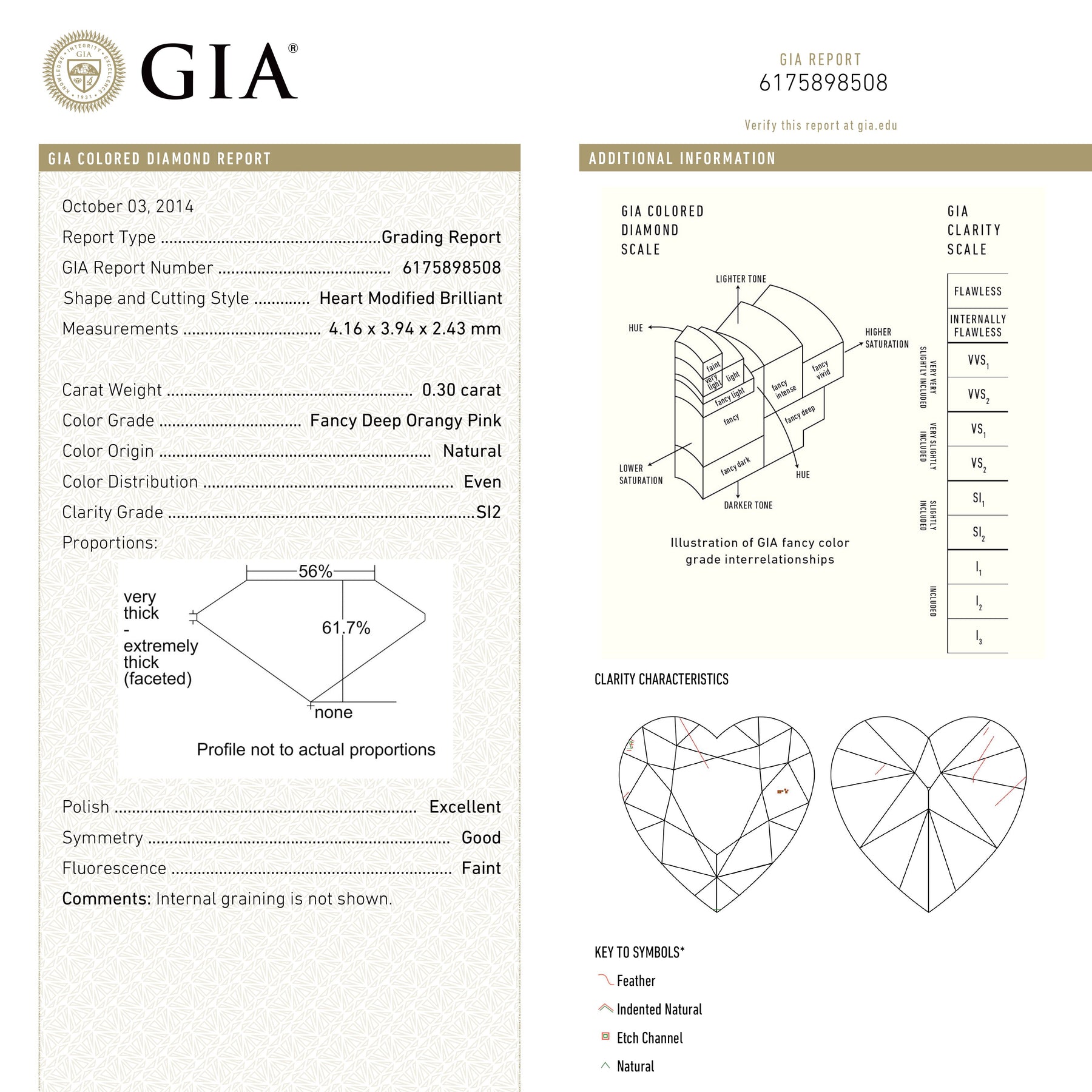 0.30ct 4.16x3.94x2.43mm GIA SI2 Fancy Deep Orangy Pink Heart Brilliant 🇦🇺 24122-01